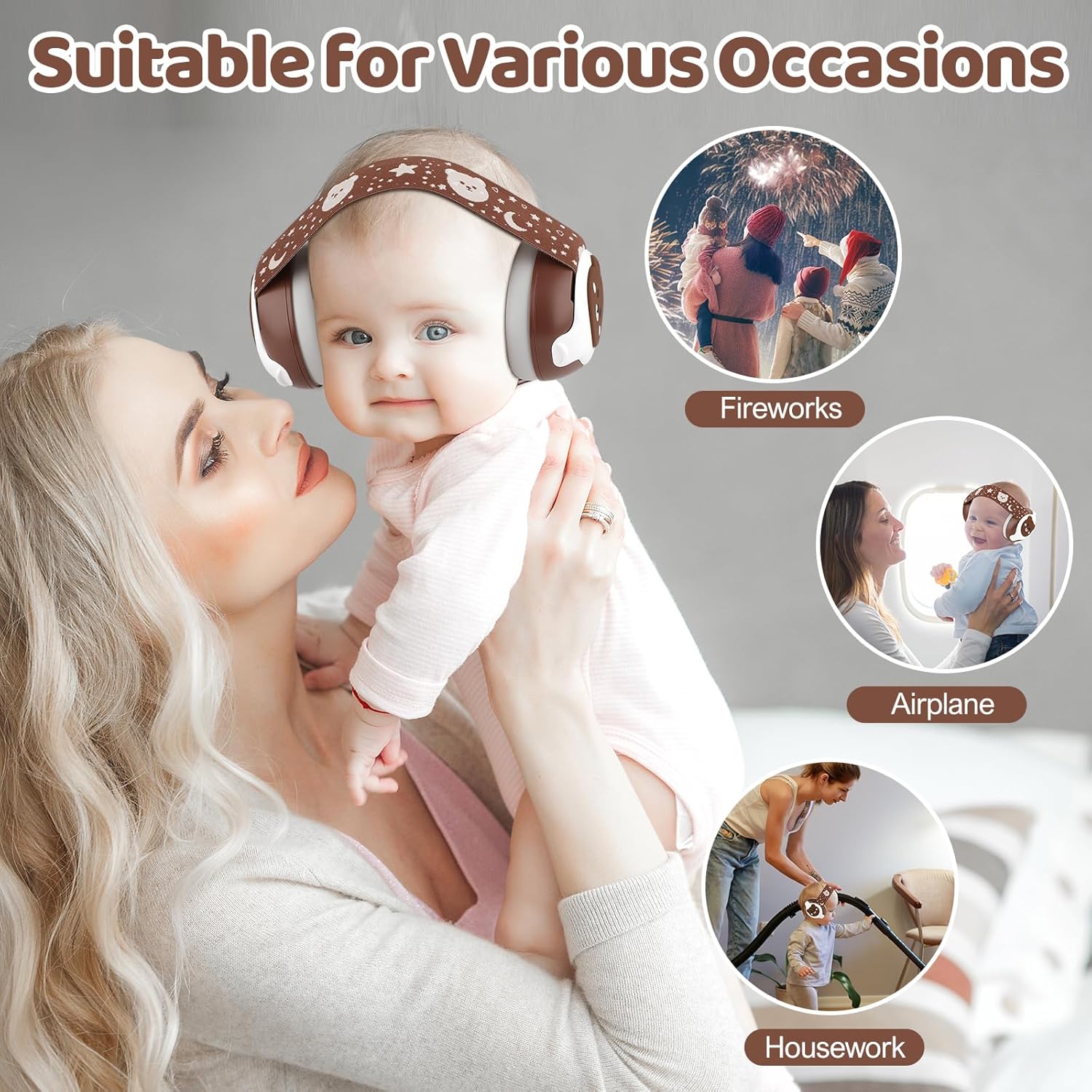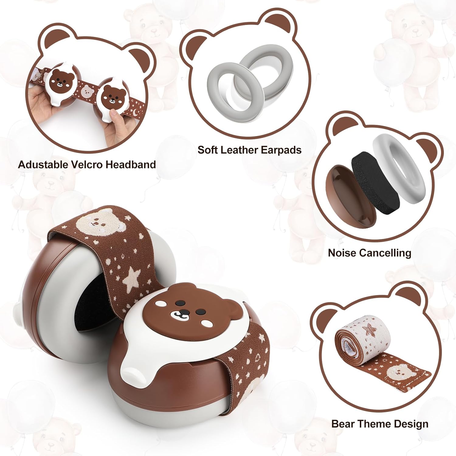 Baby Ear Protection,Bear Baby Headphones Noise Cancelling for Infant Hearing Protection Ages 0-36 Months with Adjustable Headband,25dB NRR Baby Earmuffs,Ideal Baby Travel Essentials for Sleep