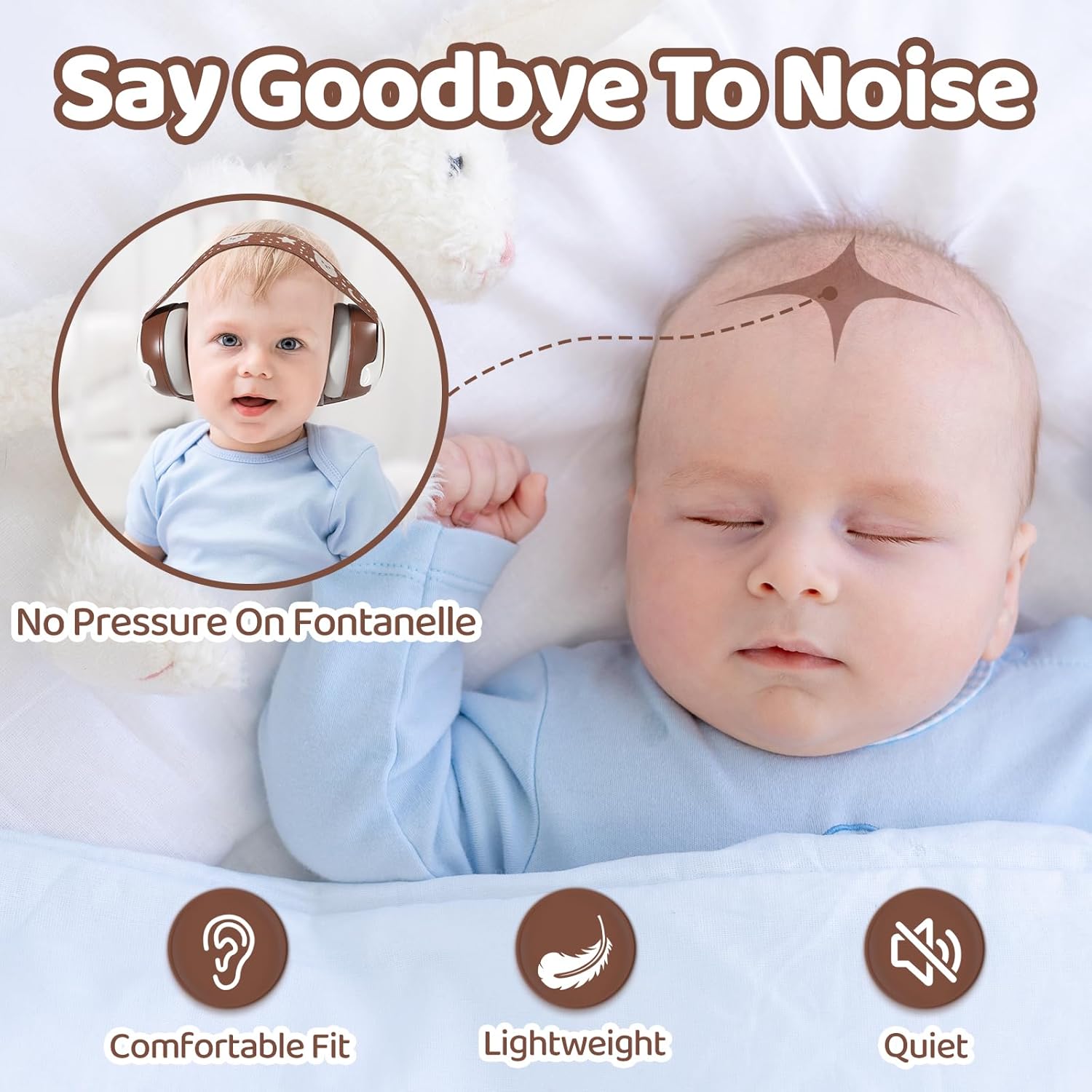 【No Pressure On Fontanel】The fontanels of babies under 18 months have not yet closed and their heads are very fragile. YomauiYee baby headphones are specially designed for this age group, with a soft headband that fits tightly and without any added pressure while minimizing noise. Provides optimal comfort and protection. Let your baby sleep like an angel even during the loudest outdoor events