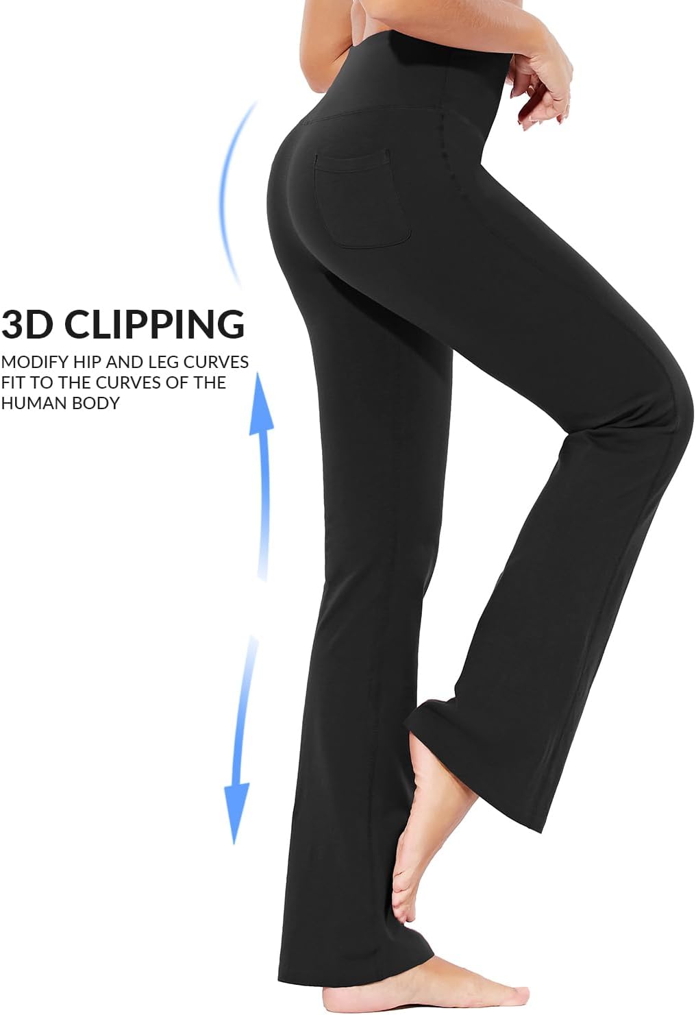 Customers find these yoga pants comfortable with nice fabric and appreciate how they enhance the silhouette of their buttocks. The pants receive positive feedback for their pockets, being big enough for phones, and one customer notes they can be dressed up or down. The fit and material quality receive mixed reviews – while some praise the high-waisted design and cotton-spandex blend, others find them too long and question the material composition. The fabric thickness is also mixed, with some finding it thick enough for cooler weather while others describe it as thin, and customers report issues with pockets having holes and being useless for gym use.