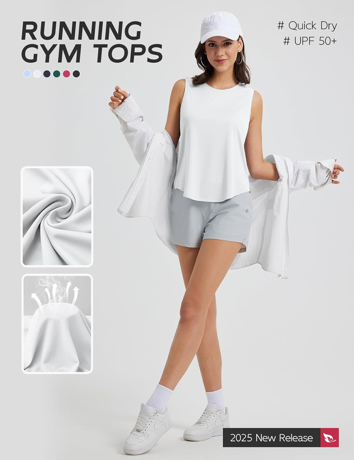 baleaf Women’s Sleeveless Workout Tops Athletic Racerback Tank Top High Neck Yoga Running Shirts Loose Fit Gym Tennis