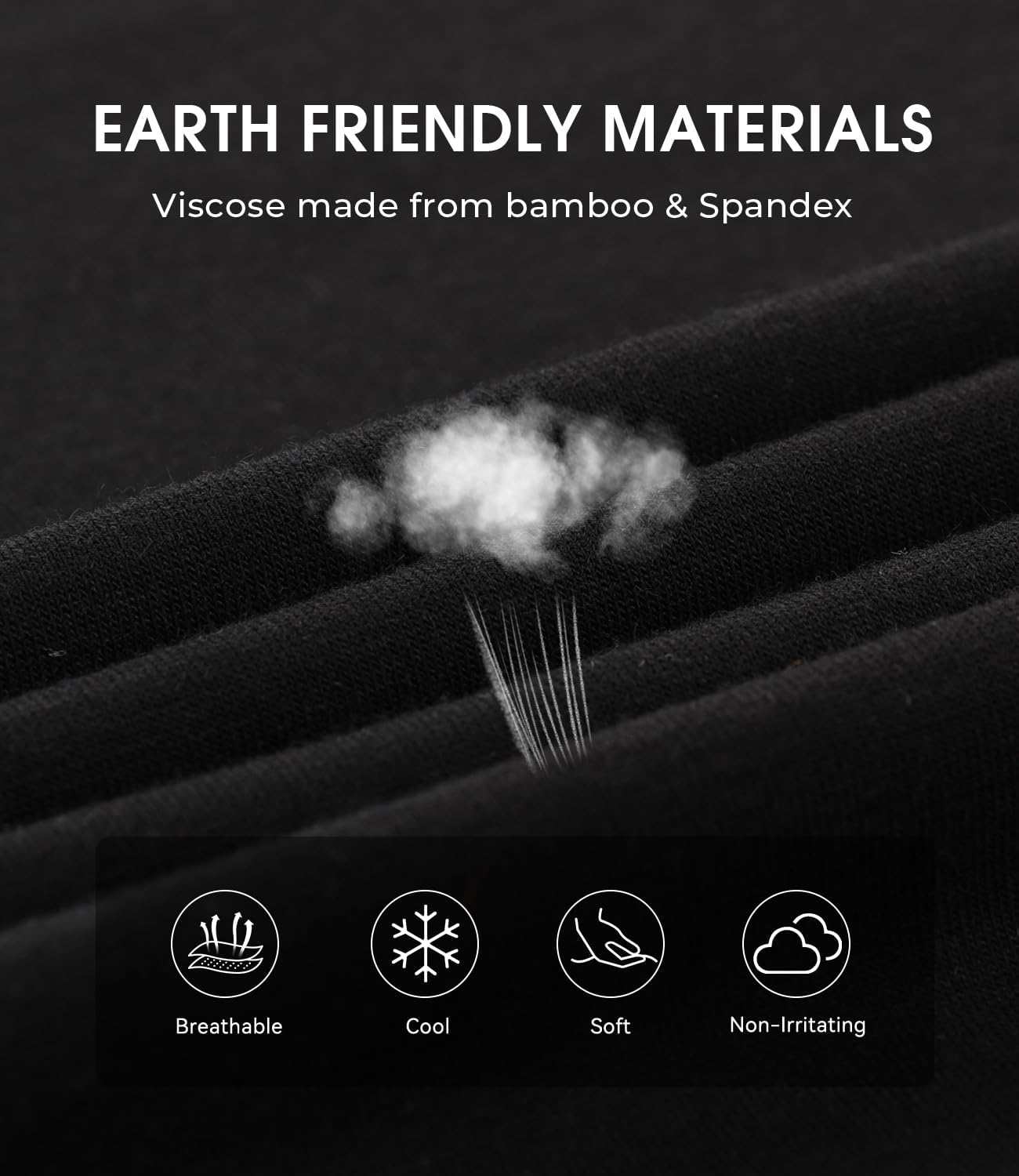 We use viscose made from 100% bamboo. The materials are more breathable, elasticity and softness. And it wicks away moisture well, aiding in versatile living scenarios