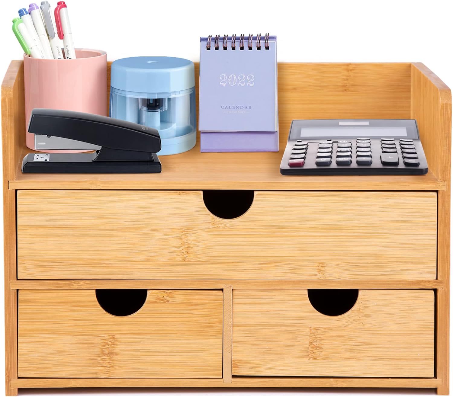 MUST-HAVE ORGANIZATION AND STORAGE HACK: Surprise your loved ones with a stylish and highly-convenient desktop organizer with drawers. Make sure your kid’s desk is organized, and offer your friends or coworkers an essential bamboo desk caddy.