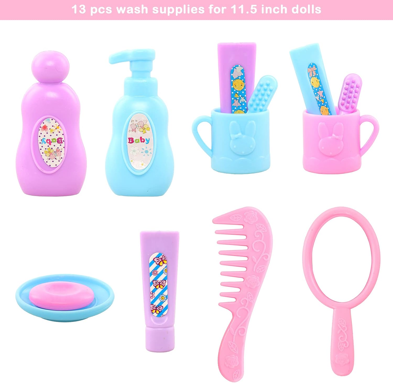 WHAT CAN YOU GET – 18 pcs travel set + 13 pcs wash supplies + 13 pcs camera accessoires total 43 pieces accessories for 11.5 inch girl dolls