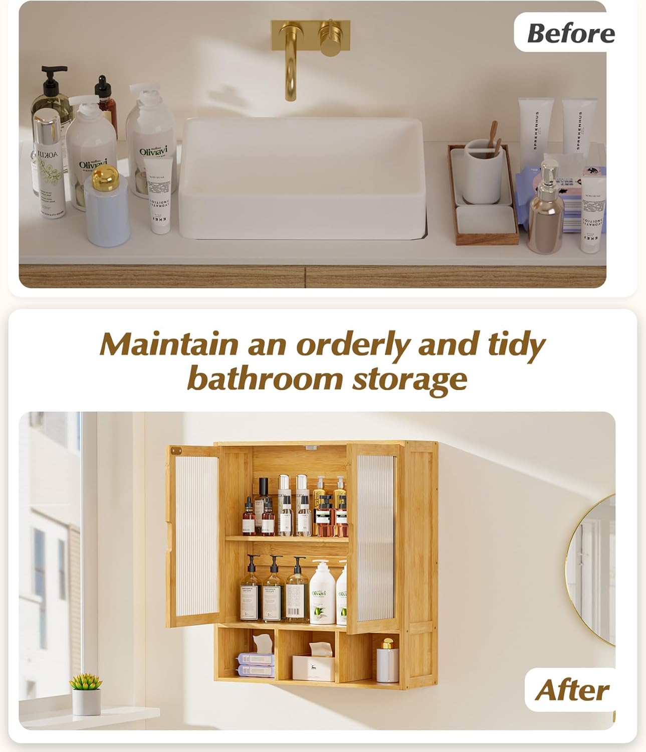 Cozivolife Bamboo Bathroom Cabinet Wall