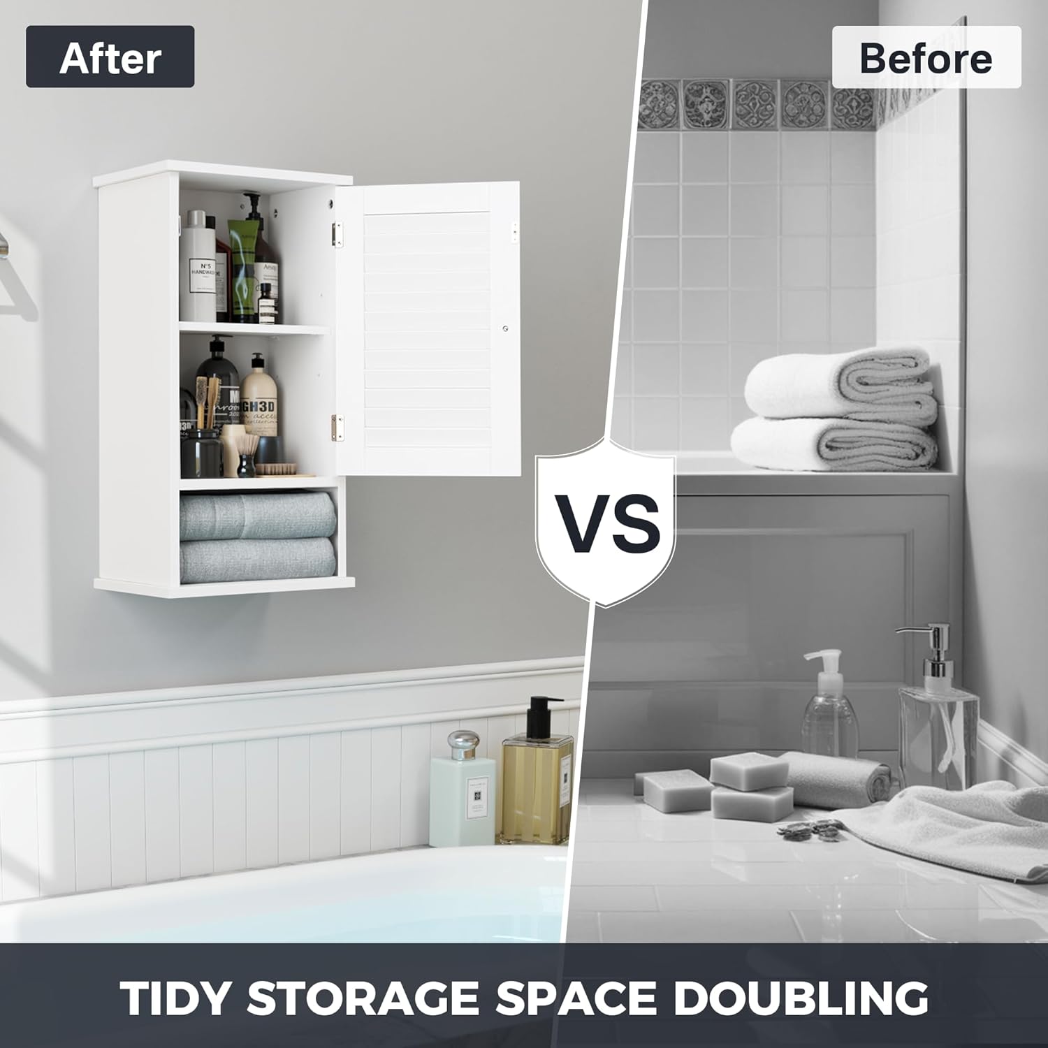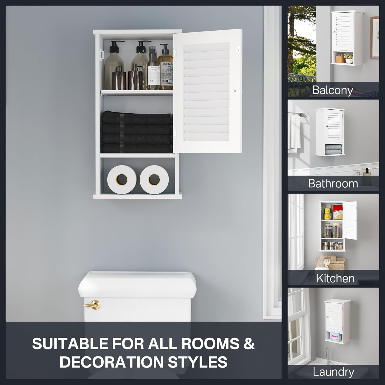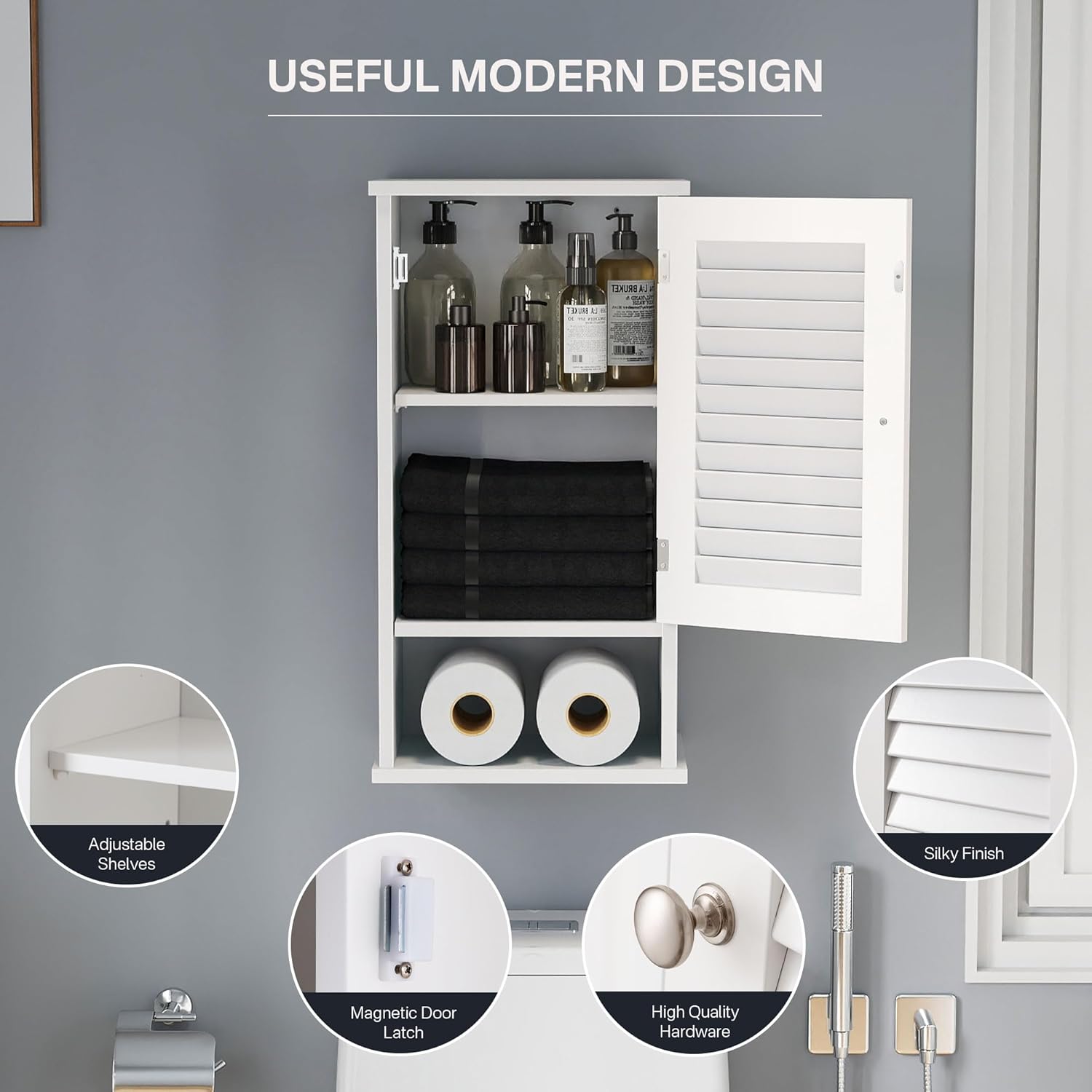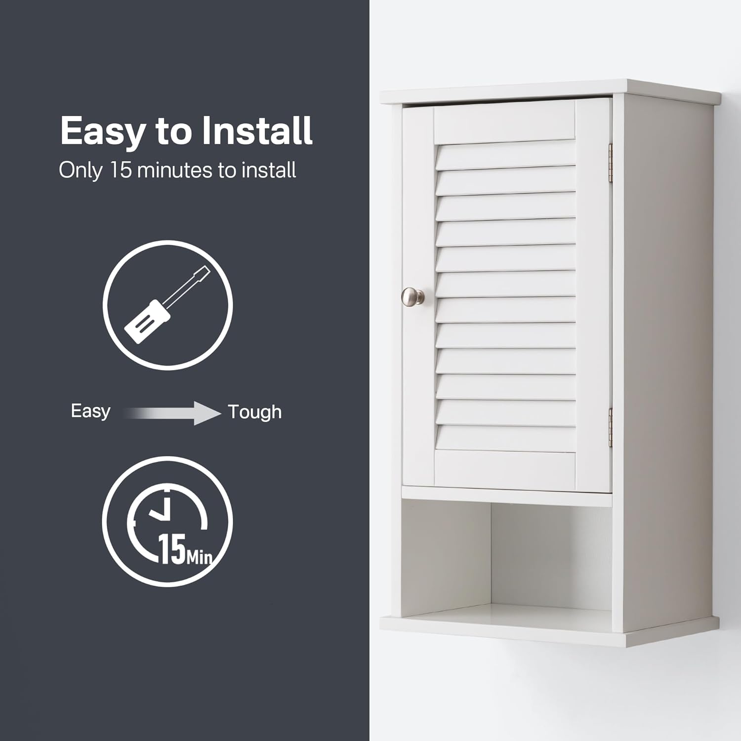 【Ventilated & Moisture Resistant】 – The unique shutter-style door promotes ventilation, while the waterproof paint resists moisture.Fralimk small cabinets perfect for bathroom environments