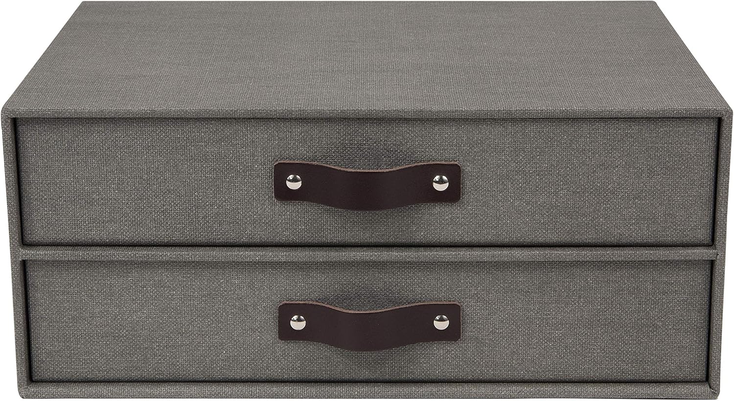 Bigso Birger 2-Drawer Canvas Fiberboard Easy Pull Handle Document Letter Box | Desktop Drawers for Loose Papers and Documents | Desktop Storage Drawers with Leather Handles | 13.1” x 10” x 5.7” | Grey