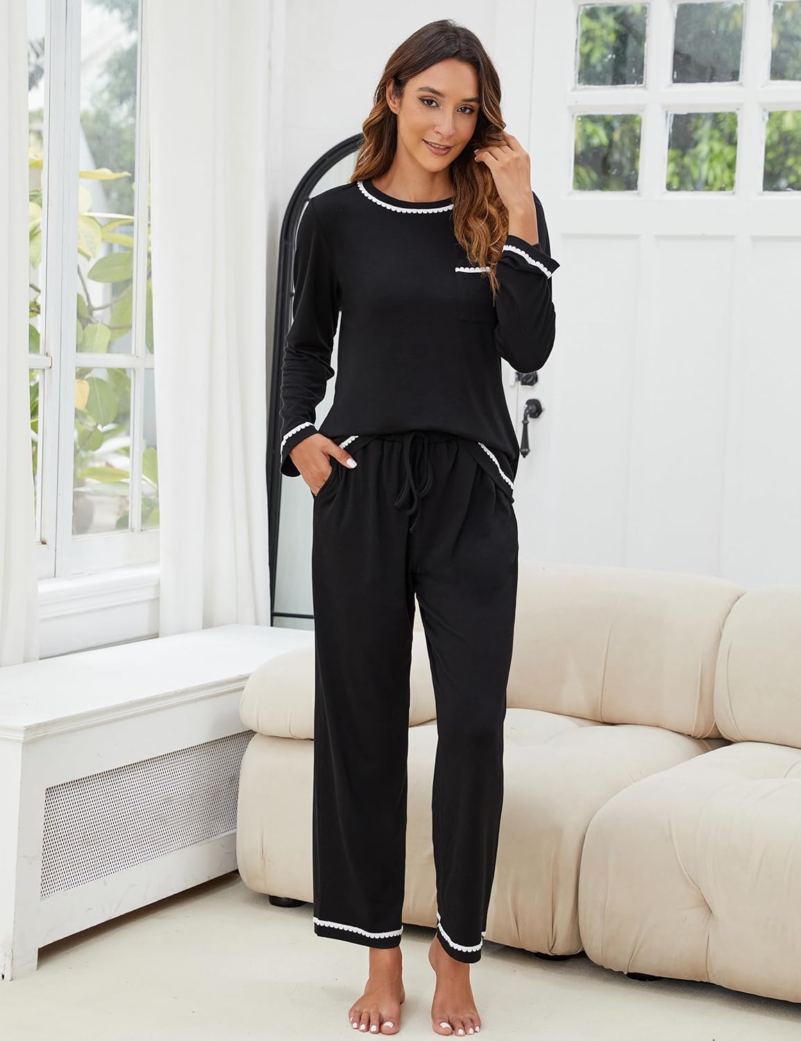 Customers find the pajama set comfortable and soft. They like the color, with one customer noting that it maintains its shape and appearance over time.