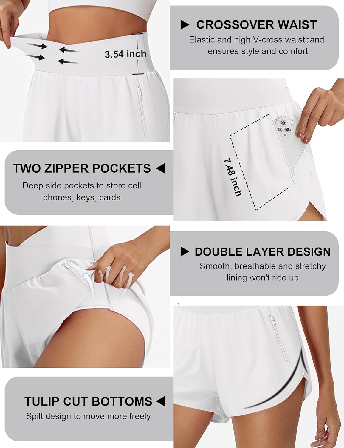 BMJL Women’s Athletic Shorts High Waisted Running Short Pockets Gym Elastic Quick Dry Workout Shorts