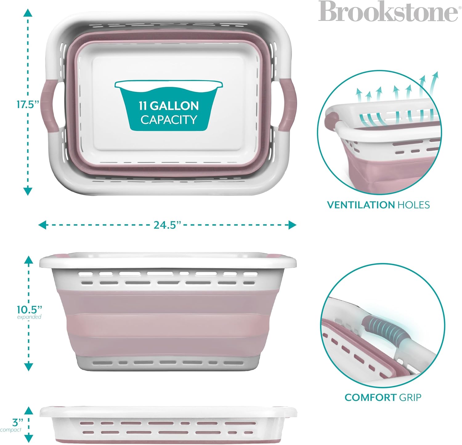 BROOKSTONE, 1 UNIT, 11 GALLONS – [OUR LARGEST BASKET EVER] 24″ Collapsible Laundry Basket, Comfort Non-Slip Grip Handles, Minimalist Space Saving Design, Portable Pop-Up Hamper, [BPA FREE]