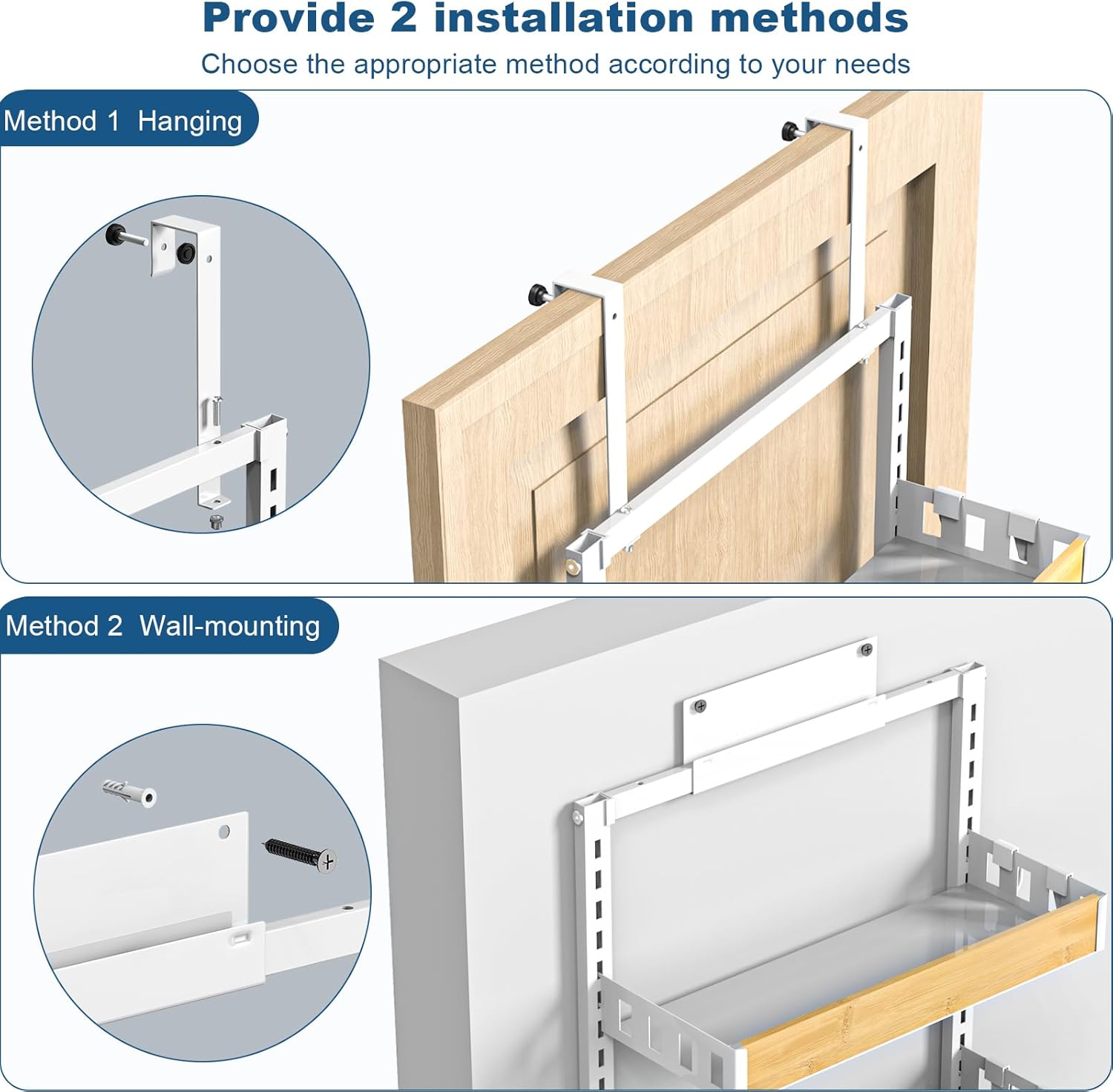 【Multifunctional and Multipurpose】Scattered bottles and jars on the wall receive, make the article such as kitchen, bathroom receive easily, hang namely. Door hanging and wall hanging are available. Used for the kitchen, bedroom, bathroom and other scenes to receive, let your home become neat and beautiful