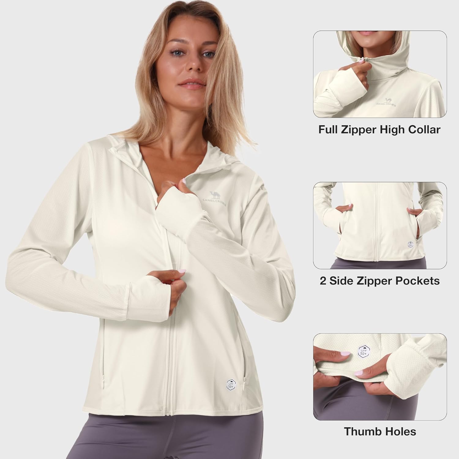 CAMELSPORTS Women UPF 50+ Athletic Jacket Sun Protection Long Sleeve Hiking Shirts Lightweight Outdoor Hoodie with Pocket