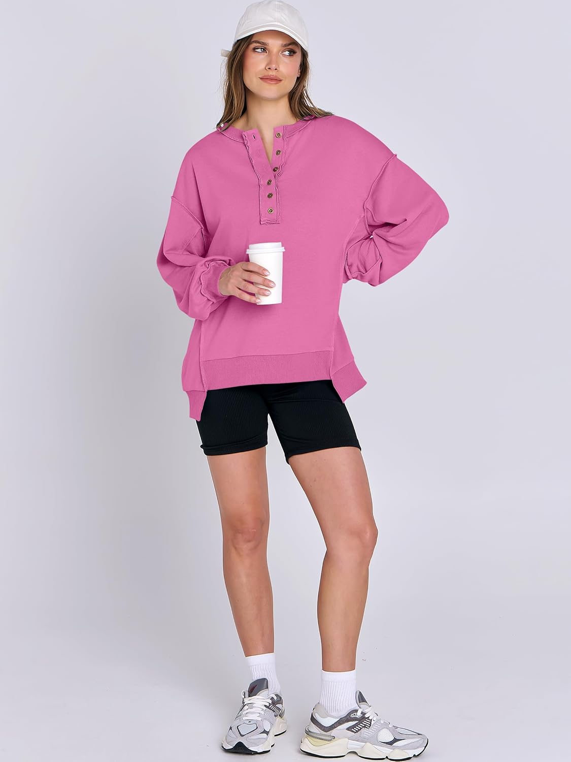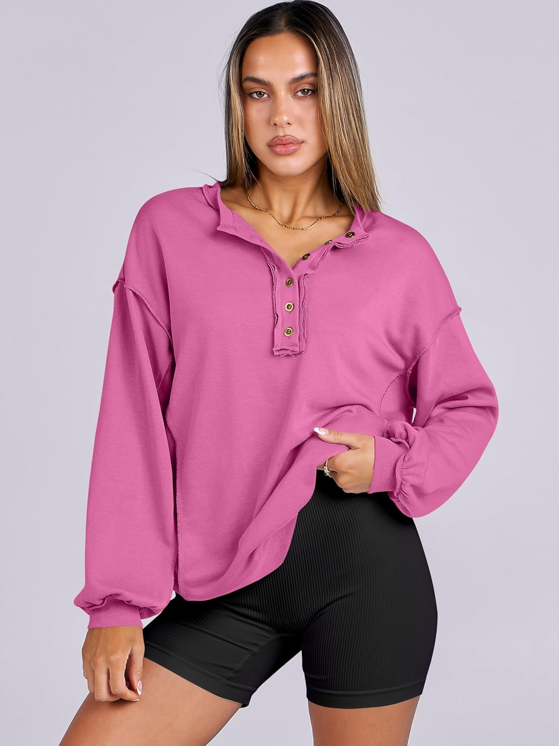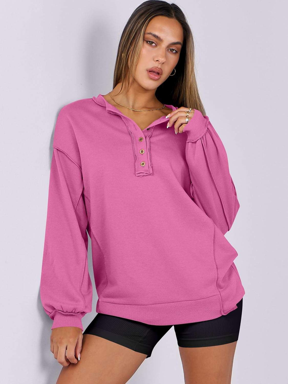 Caracilia Women’s Oversized Sweatshirts Henley Pullover Hoodies