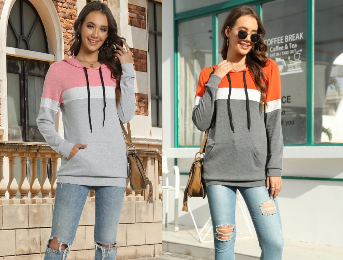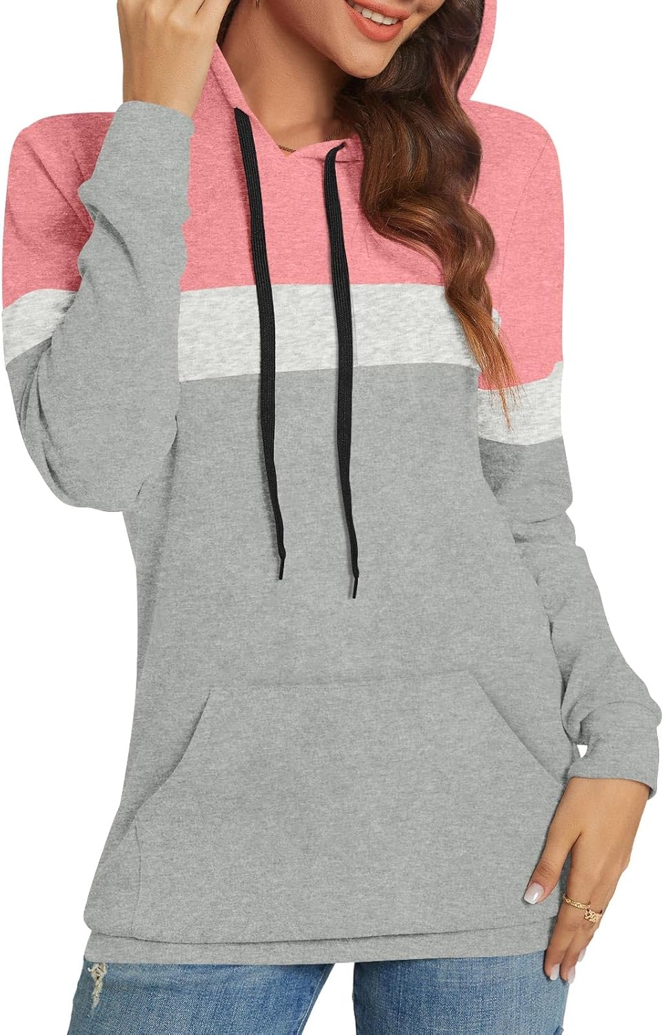 CATHY Womens Hoodies Color Block Tunic Long Sleeve Clothes Fall Fashion 2025