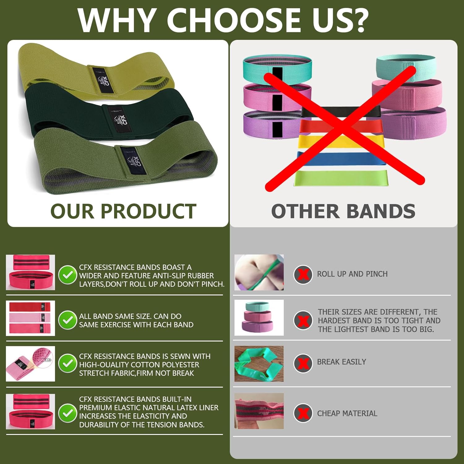 Resistance Bands Lightweight Portable:CFX fabric resistance bands comes with a storage bag.The fitness bands occupies a small space and it can be easily carried with you.No matter where you are traveling, at home, gym, etc.You can also take resistance band with you on the way in the office, vacation, etc., or squat down anytime while watching TV at home.Also is a great Gift for You and your friend.