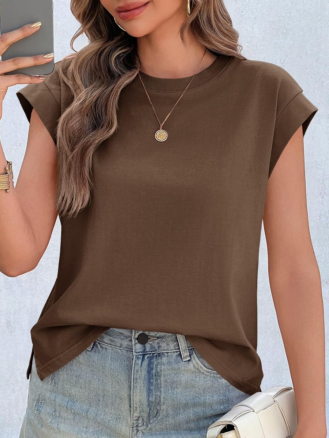 Womens Cap Sleeve Cotton Tank Tops Summer Casual Loose Fit T Shirts Crew Neck Basic TeeWomens Cap Sleeve Cotton Tank Tops Summer Casual Loose Fit T Shirts Crew Neck Basic Tee