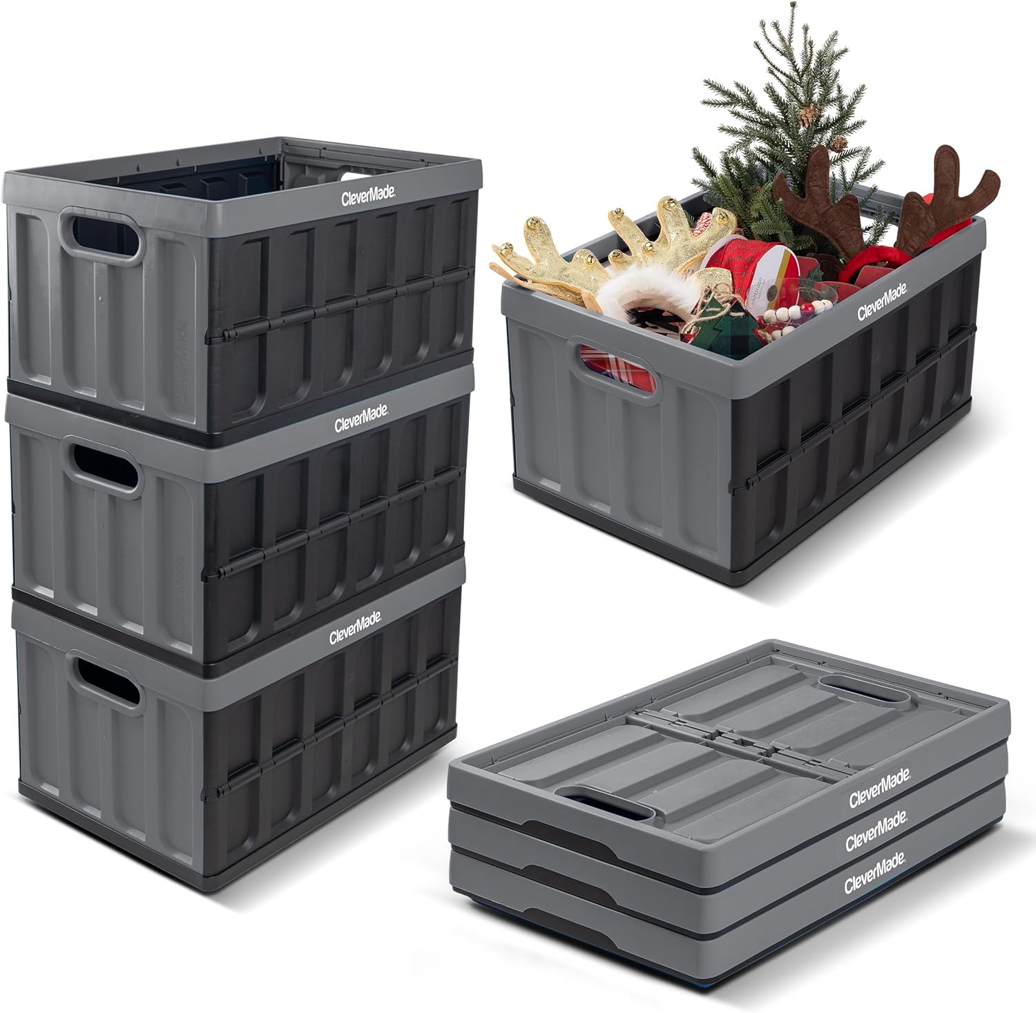 The CleverMade collapsible & stackable plastic storage crate is a smart, space-saving solution to simplify all of your activities, trips and day-to-day tasks. Pop ’em open when you need them, fold ’em Flat when you don’t. Clevercrates combines packing, transport and storage into one reusable, collapsible container. This brand new model includes a slimmer profile, revamped aesthetics, and ergonomic handles. These all-purpose utility crates can also increase the ease and efficiency of daily tasks and storage, both indoors and out. Try them out for wholesale club shopping, grocery runs, storing sporting equipment, arts and crafts, gardening, and home improvement projects. Measuring 20.95″ L x 13.75″ w x 11.2″ H, it holds 46 liters (48 quarts) by volume, with a maximum load capacity of 75 pounds. It features a sturdy bottom base with solid walls, making them ideal for heavy-duty projects. Comfortable, ergonomic side grip handles make heavy lifting a breeze. The interlocking Nesting system provides stability for vertical stacking. When not in use, it collapses down to 2.25″ H for compact storage and weighs 4.7 pounds. Clevercrates are made of recyclable materials, Offering a sustainable alternative to plastic and paper bags, totes, and boxes. Clevercrates are easy to clean, simply hose off or wipe down with a wet cloth.
