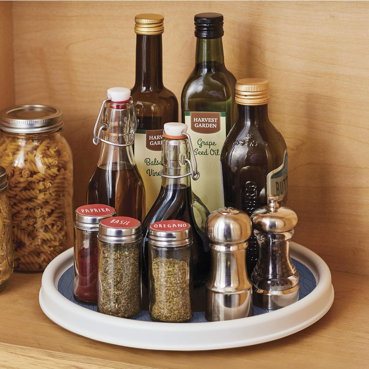 Copco Basics Non-Skid Pantry Cabinet Lazy Susan Turntable, 12-Inch, White/Steel Blue