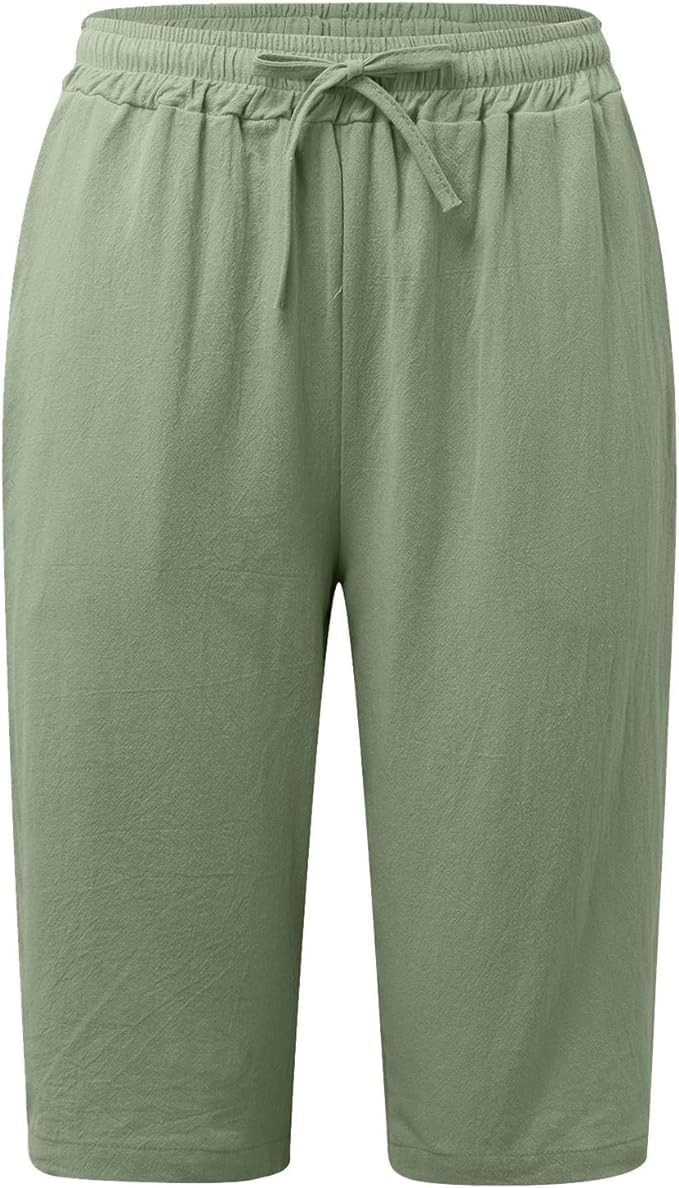 Cotton Linen Shorts for Women Casual Loose Bermuda Shorts Summer Solid Color Elastic Waist Drawstring Beach Pants