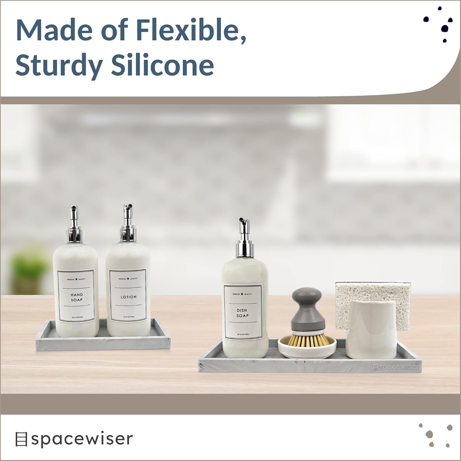 Use Them Anywhere – Choose the endlessly useful and aesthetically pleasing trays that work anywhere. Spacewiser Original Silicone Trays work perfectly as a bathroom tray, vanity tray or kitchen sink tray. Spacewiser trays are made of premium food grade silicone, without the addition of potentially unsafe thickening and hardening agents or chemicals. They’re shatterproof, waterproof, slip-resistant, heat resistant to 425F, and dishwasher safe.