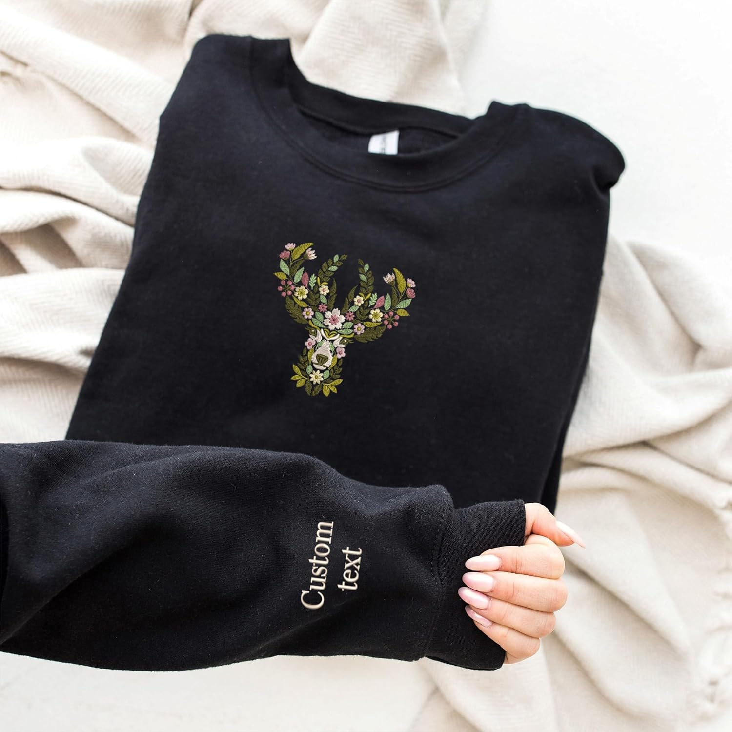 🦌 Custom Embroidered Floral Deer Sweatshirt – A Cozy & Personalized Deer Lover Gift!