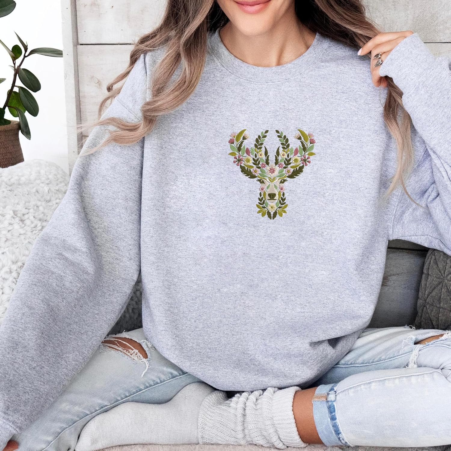 Are you a nature enthusiast, wildlife lover, or someone who loves aesthetic embroidered designs? This custom floral deer sweatshirt is the perfect way to show off your love for deers and forest animals while staying warm and stylish.
