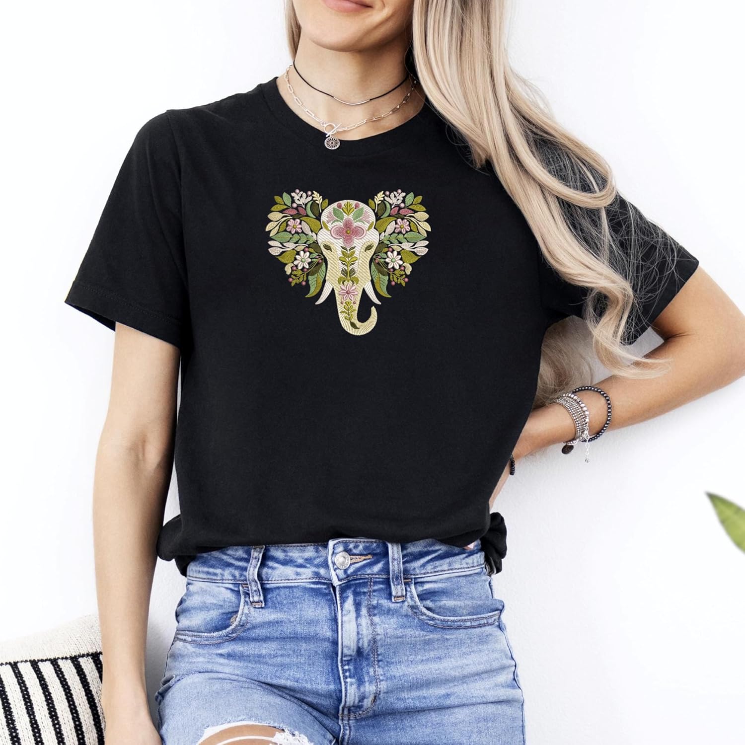 ✔ Floral Embroidery – Beautifully detailed stitched floral elephant artwork