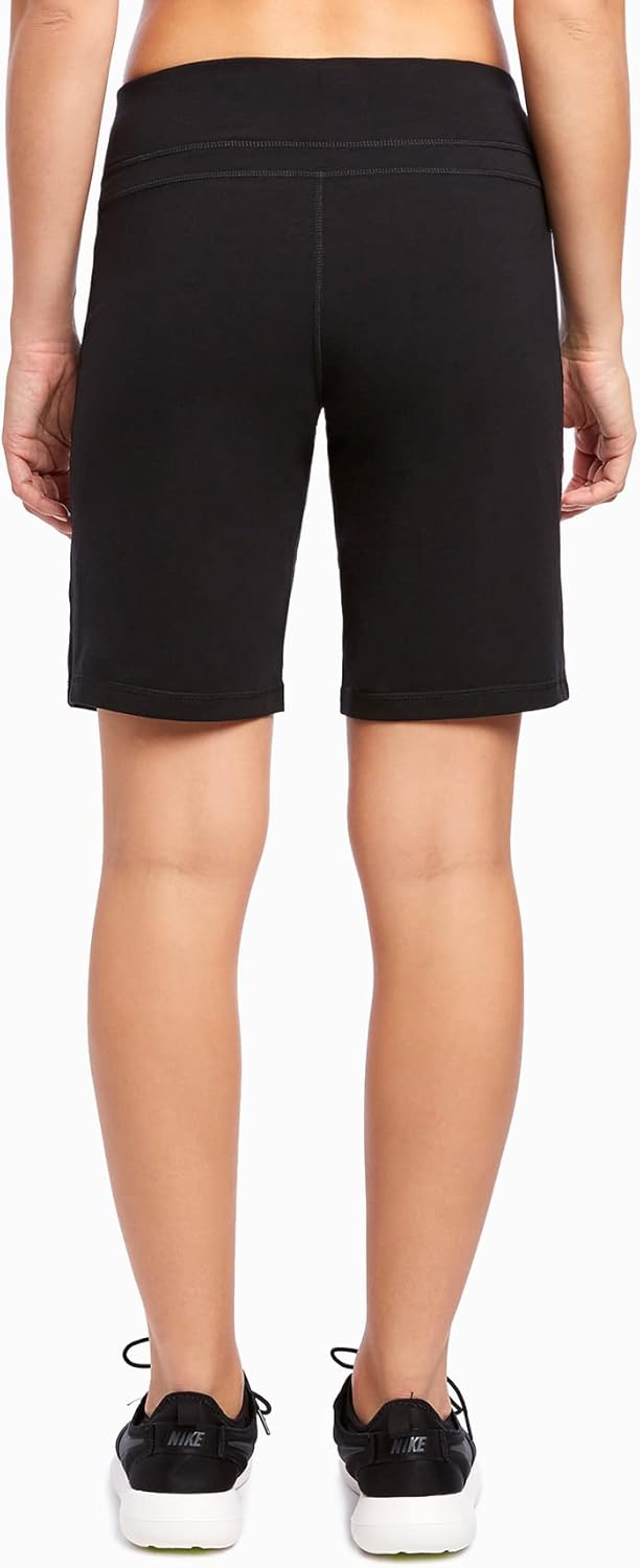 Our versatile Bermuda short offers the coverage you need for fitness or casual wear. Our Essential Wide Waistband Bermuda Short is a comfortable option for fitness or casual days out. Made of a cotton/spandex blend for a supportive stretchy feel, this variation of our basic, ultra comfortable Bermuda Short features a wide, high rise elastic waistband, super soft fabrication with moisture wicking details, and a 10” inseam.