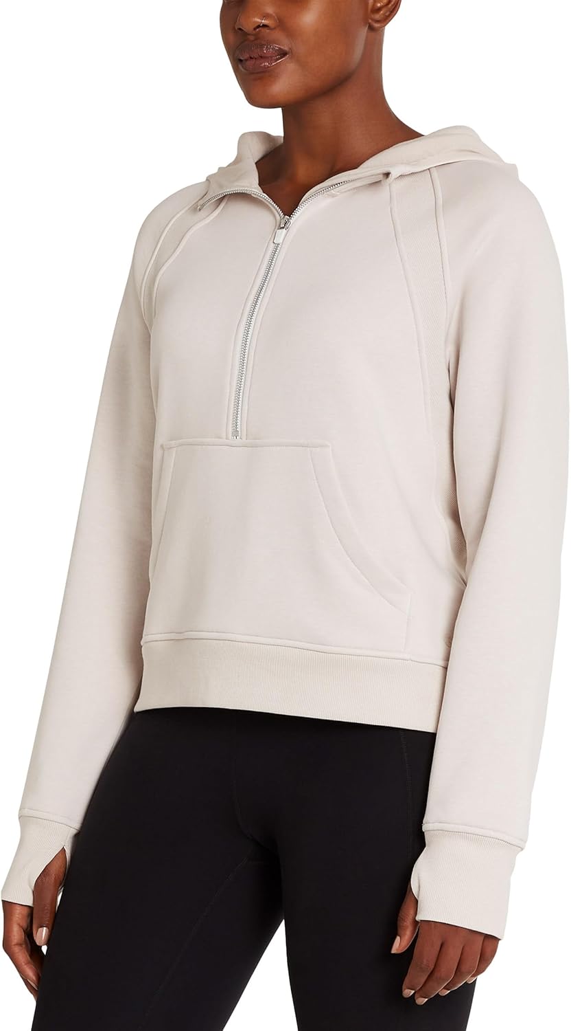 Stay cozy and stylish in this Danskin Mixed Rib Half Zip Hoodie. This heavyweight sweatshirt features a relaxed fit that provides ultimate comfort for your active lifestyle. Available in stunning colors, this versatile piece complements any casual wardrobe. The center front zipper allows for easy wear, while the kangaroo pocket offers convenient storage and hand warming. The ribbed hem and cuffs ensure a secure fit and add a classic touch to the design. Crafted with approximately 345 GSM material, this hoodie delivers substantial warmth without compromising on style. Perfect for cool weather activities, lounging at home, or running errands, this half-zip hoodie combines functionality with fashion.