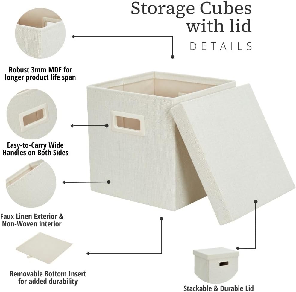 💪Value Pack: Set of 3. Dimensions (each without lid): 11” (L) x 11” (W) x 11” (H) / (28 cm x 28 cm x 28 cm). Our fabric storage cubes offer exceptional quality at a more affordable price compared to similar options on the market.
