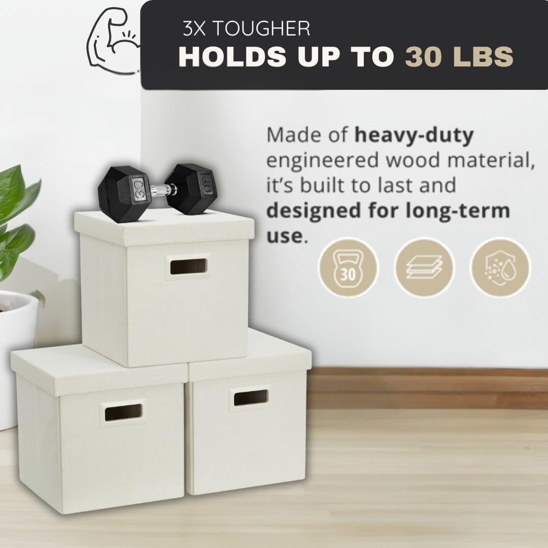 💪Exceptional Durability: Tested to be 3x more durable than market products, made of heavy-duty MDF board (engineered wood) for frequent use. Our fabric storage bins with lid can hold up to 30 lbs without warping or sagging even when stuffed.