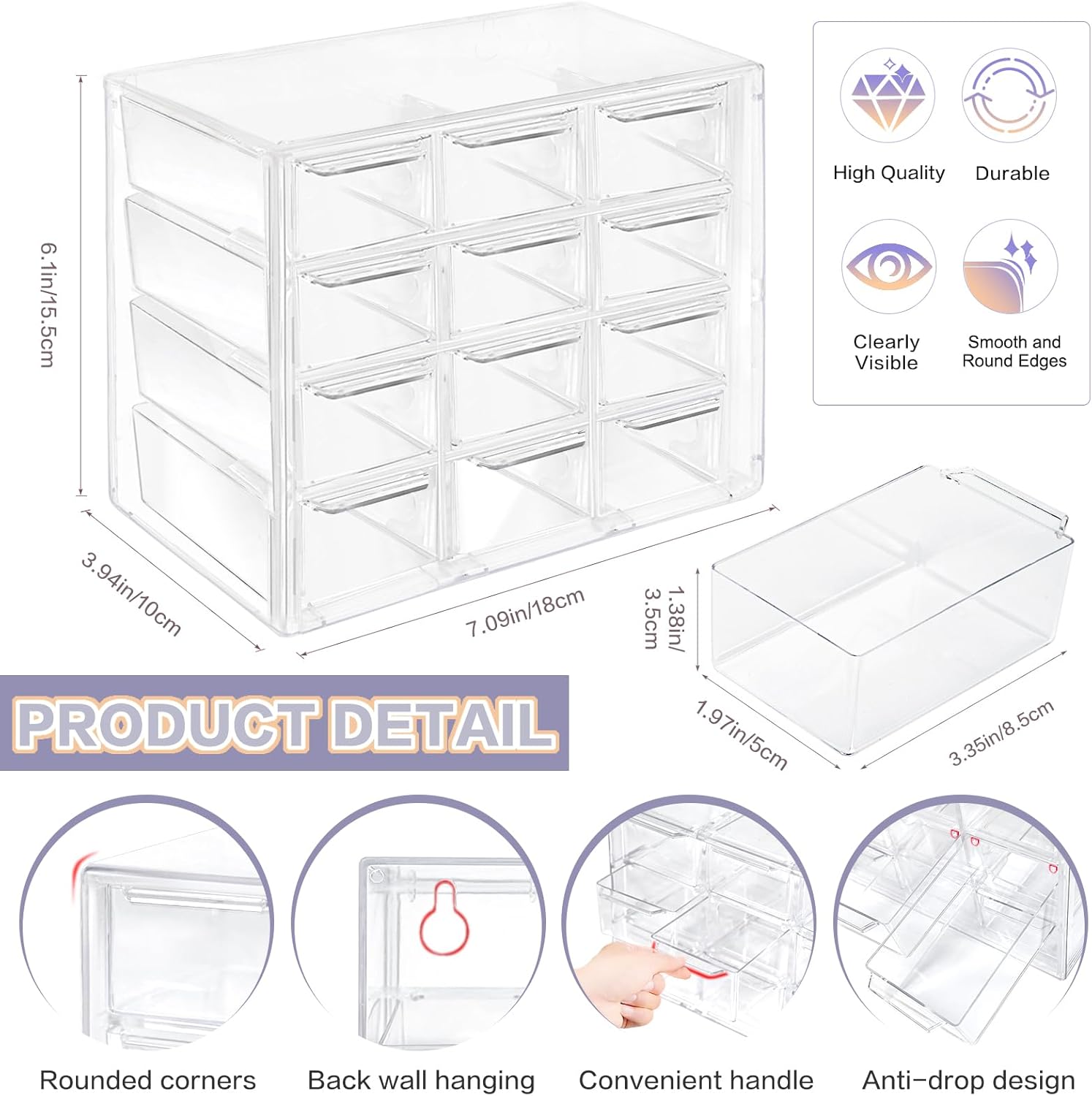 Versatile Mini Storage Box: Designed with 12 separate dust-proof drawers, suitable for storing small stationery and accessories, earrings, beads, office supplies, back to school stationery, craft supplies, jewelry, rubber bands, hair clips, cosmetic, tape and more to keep your workspace tidy and say goodbye to disorganized and cluttered life