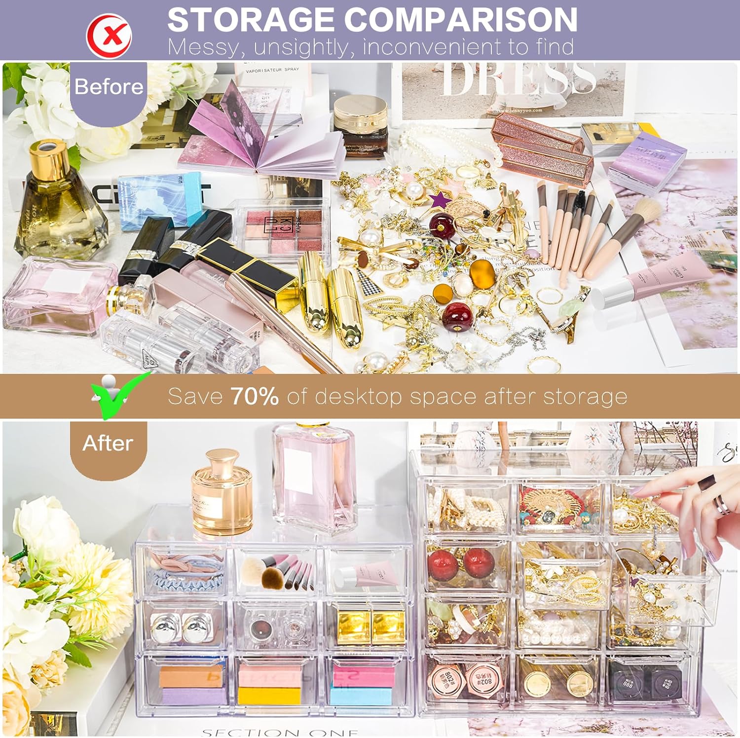 Minimalist 12 Drawer Design: Fully transparent drawer design, embodying a beautifully understated element of minimalist design that complements almost any decor. The Storage Organizer has 12 clear drawers that pull out smoothly to help you organize and classify your stuff in an orderly manner