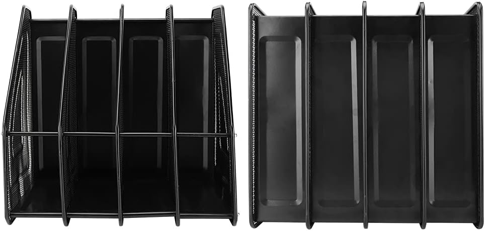 Desktop Magazine File Document Rack Organizer Modern Design Ventilated Black Metal 4 Compartments Office Shelf for Easy Organization (Black)