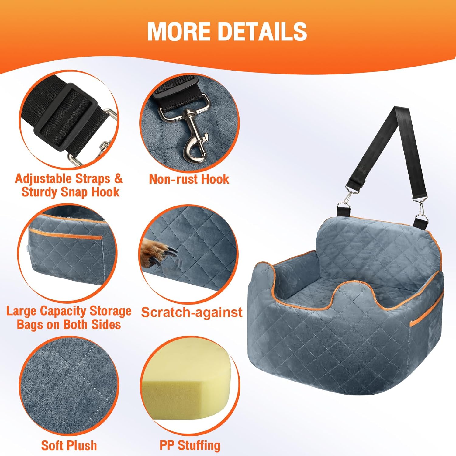 Detachable and Machine Washable: Our car dog bed build-in zipper, you can quickly undo the covers and wash it all down to keep the seat fresh and clean. Please note that the inner foam is not washable