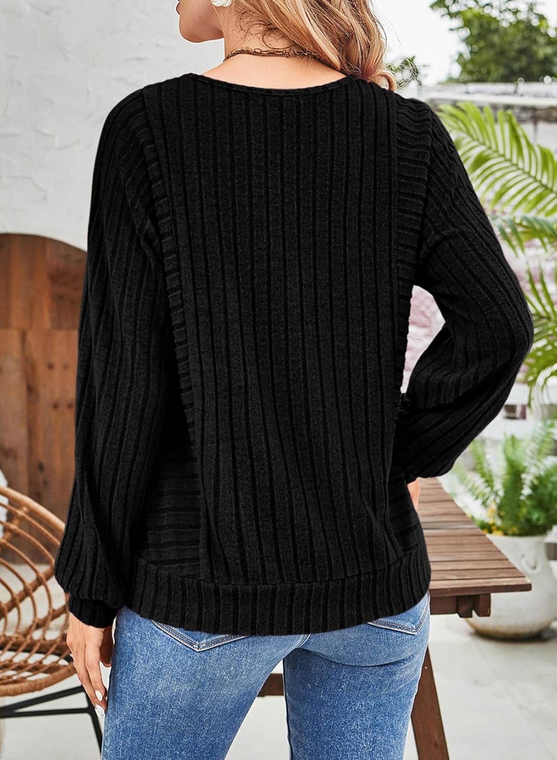 The video showcases the product in use.The video guides you through product setup.The video compares multiple products.The video shows the product being unpacked. Loose Fit Knit Tops Blouses Merchant Video