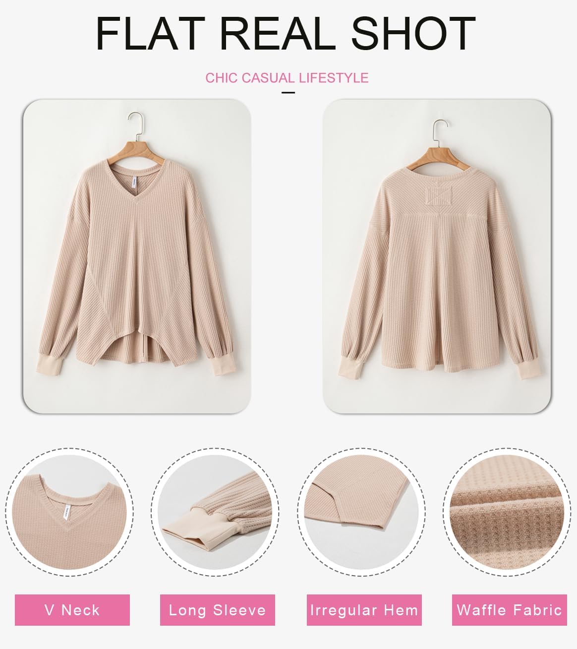 Dokotoo Casual Long Lantern Sleeve Waffle Knit Tops