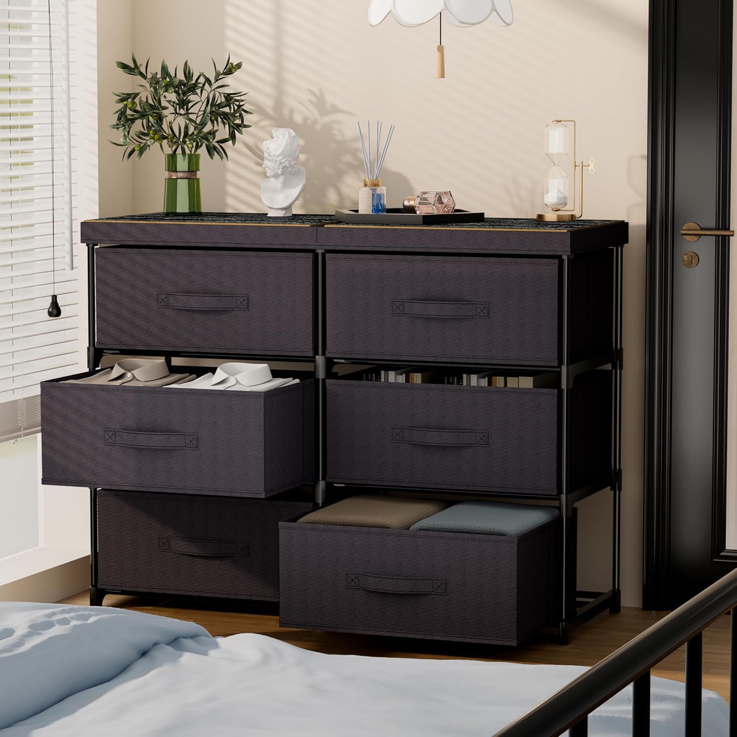High-Quality Metal Construction: This fabric dresser is crafted with durable iron, ensuring stability and a long lifespan. The top wooden shelf offers excellent load-bearing capacity, accommodating various items with ease.