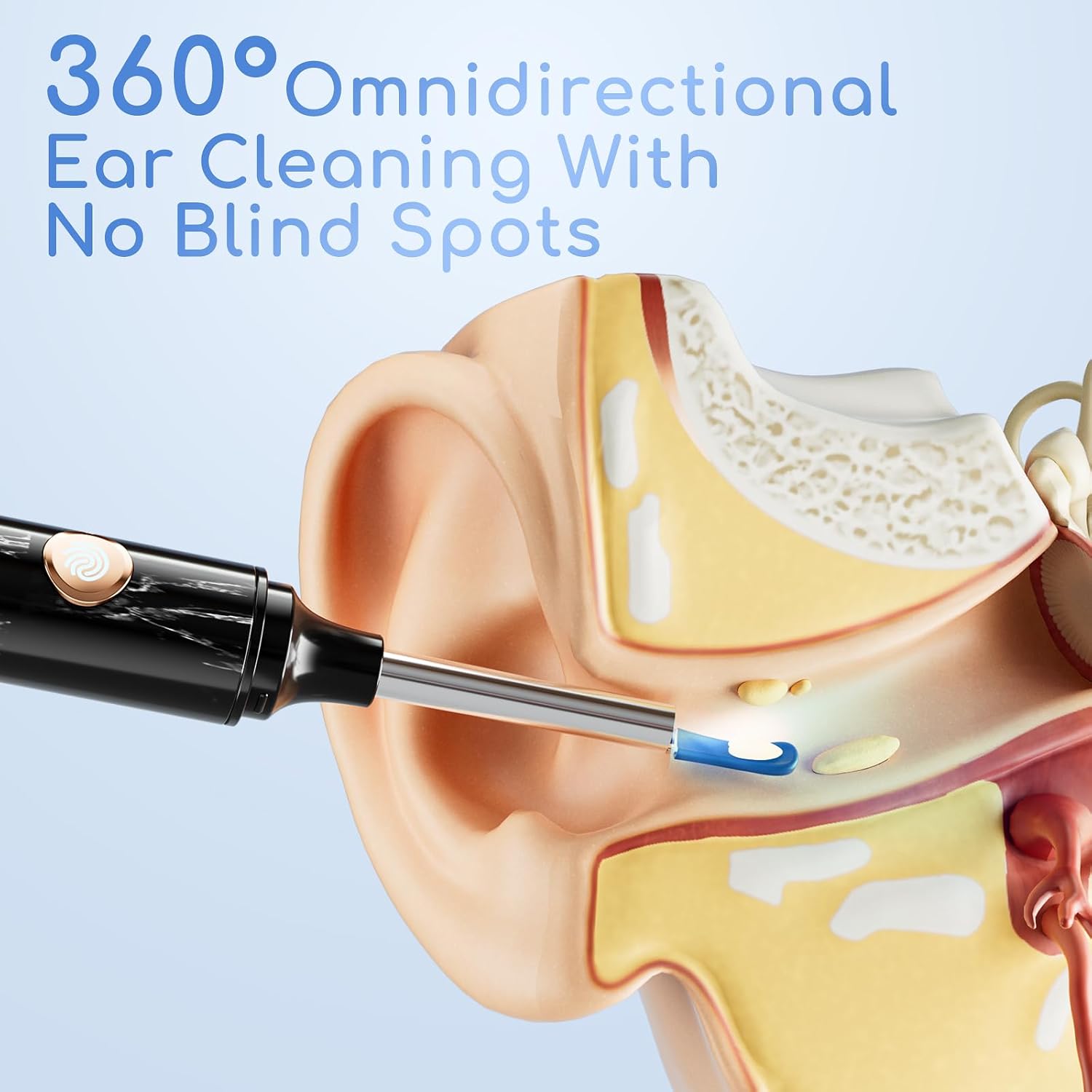 【1080P HD Ear Camera, Precise Care】 This visual ear cleaner contains 6 LED lights and a 1080P HD camera, providing you with a clear and detailed view, helping you to remove clogged ear wax easily.