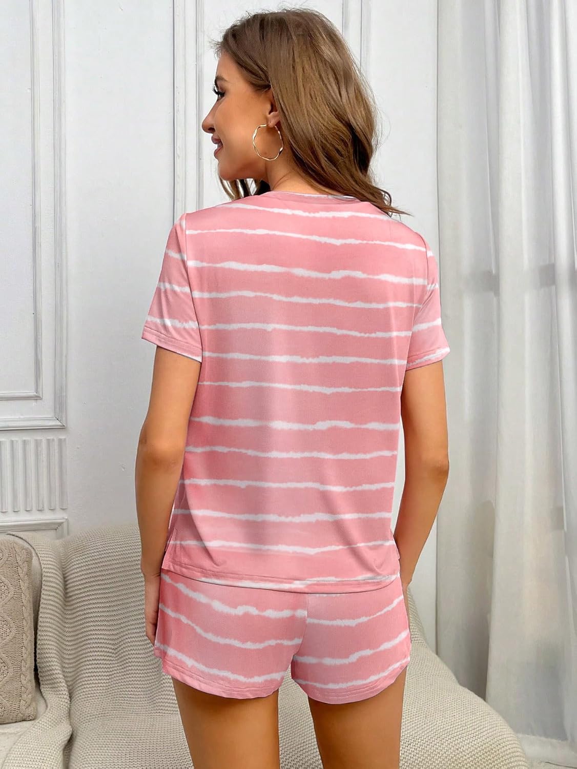 Ekouaer 2 Pack Pajamas Sets Women’s Short Sleeve Tops and Shorts 4 Piece Pjs 11