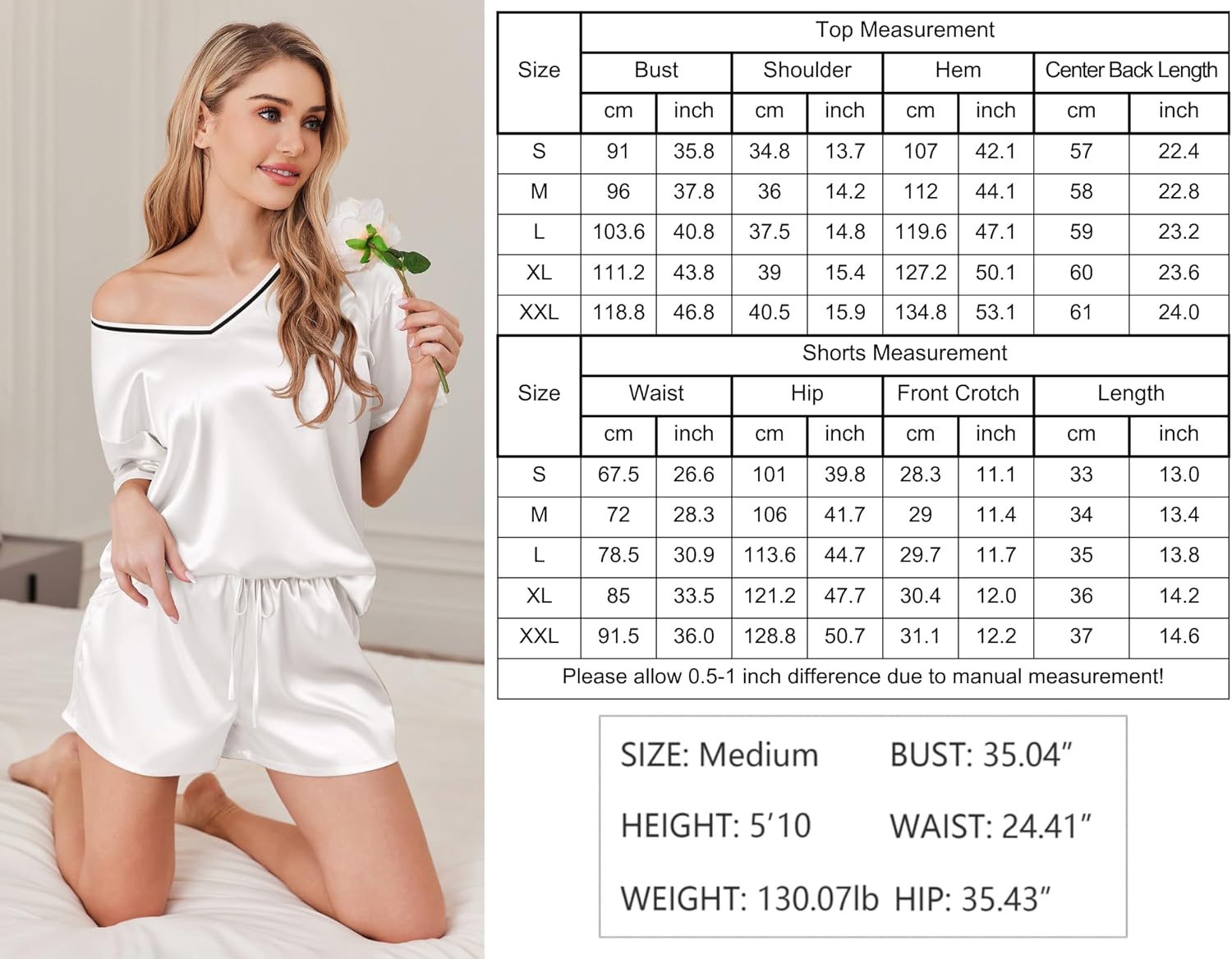 Ekouaer Satin Pajama Set for Women 2 piece Silky Pj Set Soft Short Sleeve Sleepwear Summer Loungewear, S-XXL