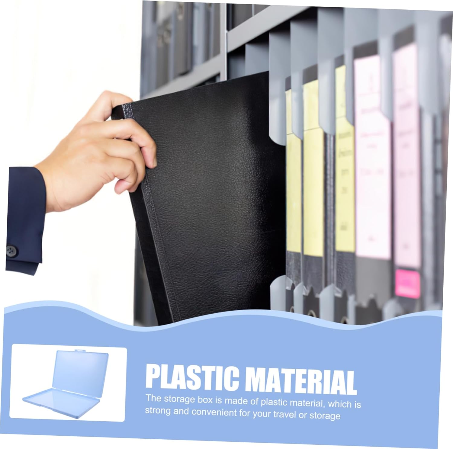 Photo organizer: the file storage box has a proper size that is suitable for most a4 size files, very practical to use,cards storage containers