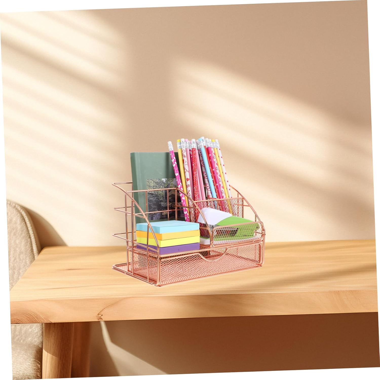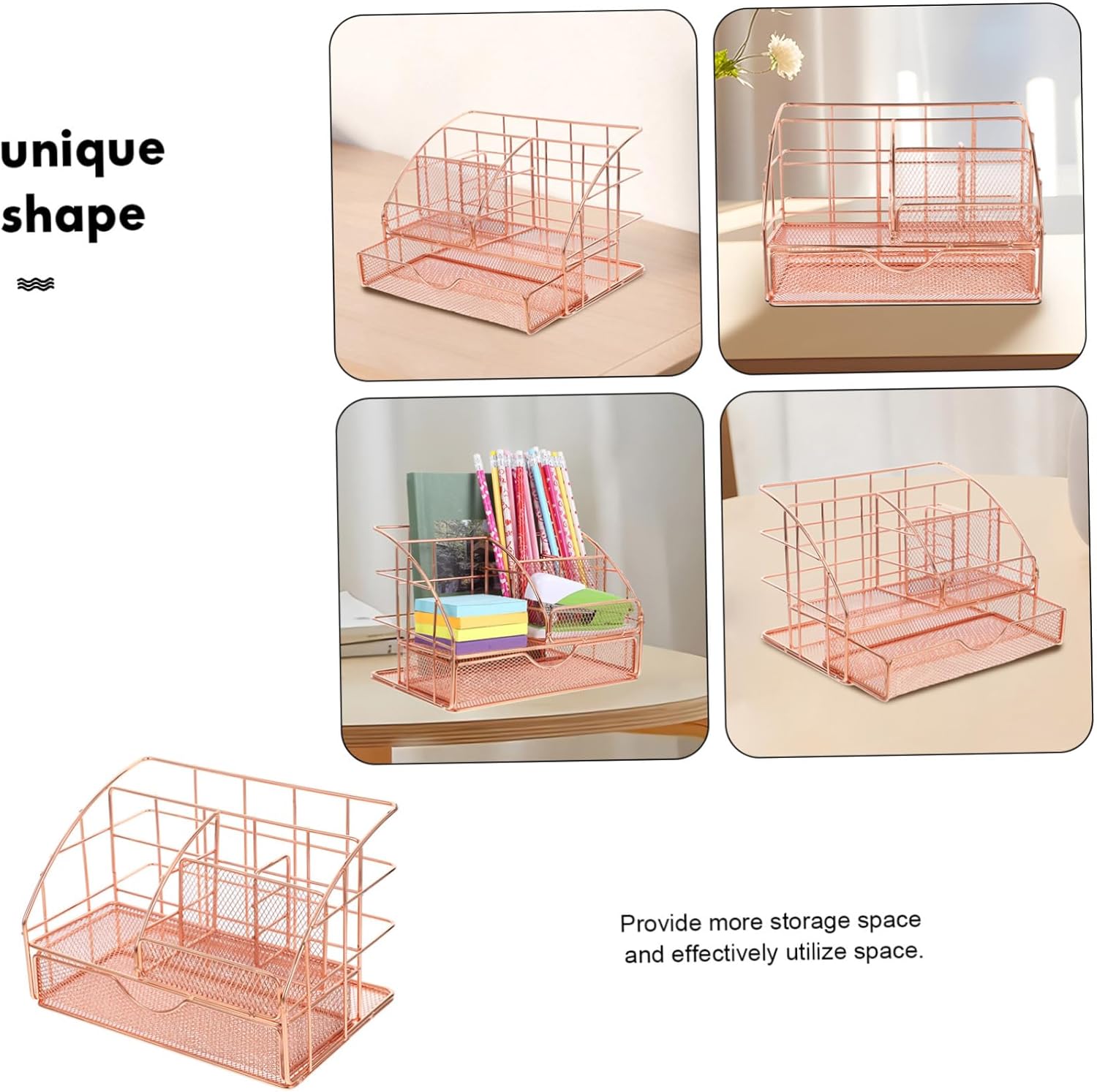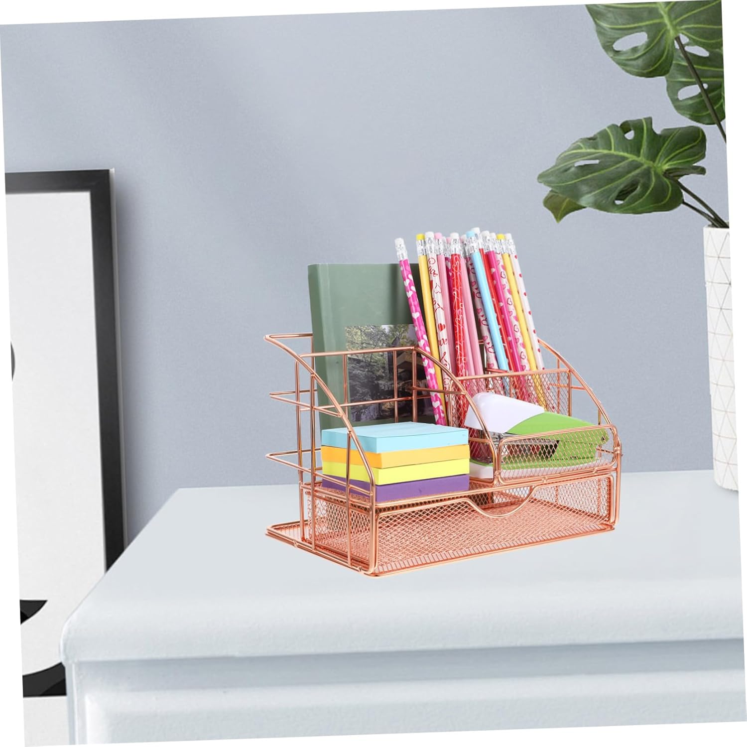 Rose gold pen holder–this multifunctional organizer is for keeping your files, stationery, and office supplies in order, ensuring a clutter- workspace,desk essentials
