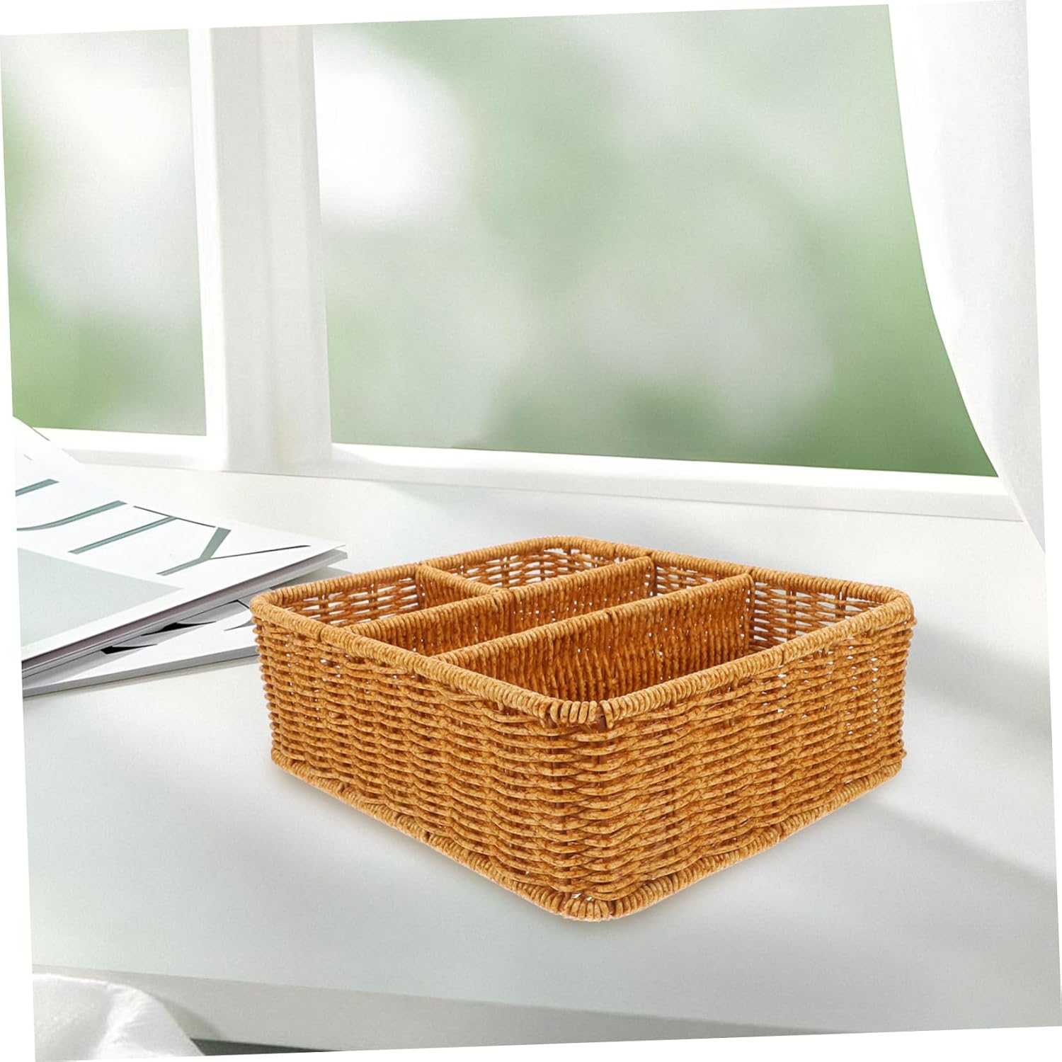 Compartments woven basket– for use in nursery rooms, bedrooms, living rooms, bathrooms, shelves, countertops, kitchens, offices and dorms,Desktop Woven Basket