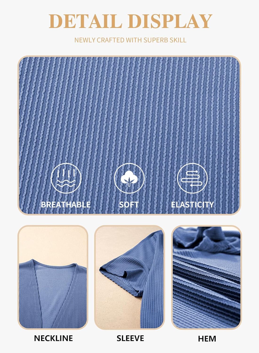 Eytino Women Plus Size Summer Cardigan Casual Loose Half Sleeve Ribbed Knit Blouse Tops,2X Blue