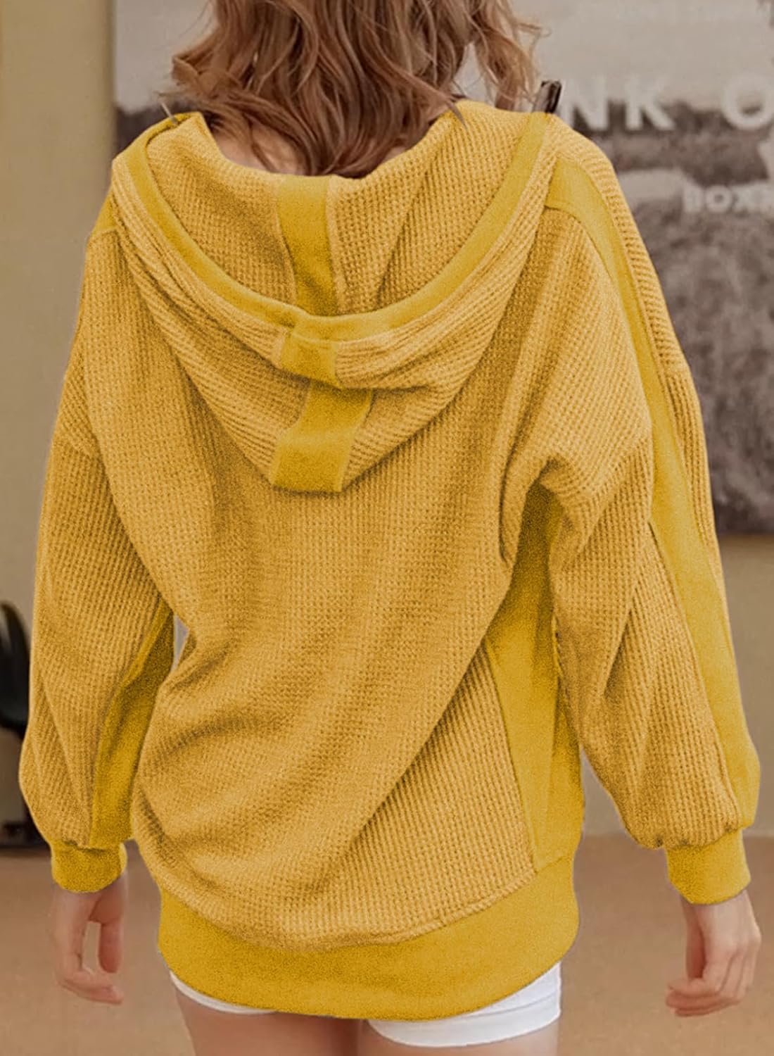 Customers appreciate the sweatshirt’s size, noting it has room to spare and the sleeves are the correct length, while also praising its color and comfort, with one customer highlighting its breathable waffle knit fabric. They find it good for cool mornings and fall weather, and like its light- and mid-weight thickness. However, the material quality receives mixed feedback, with some saying it’s well-made while others find it cheaply made, and customers report issues with the zipper being difficult to use and the material being super thin.
