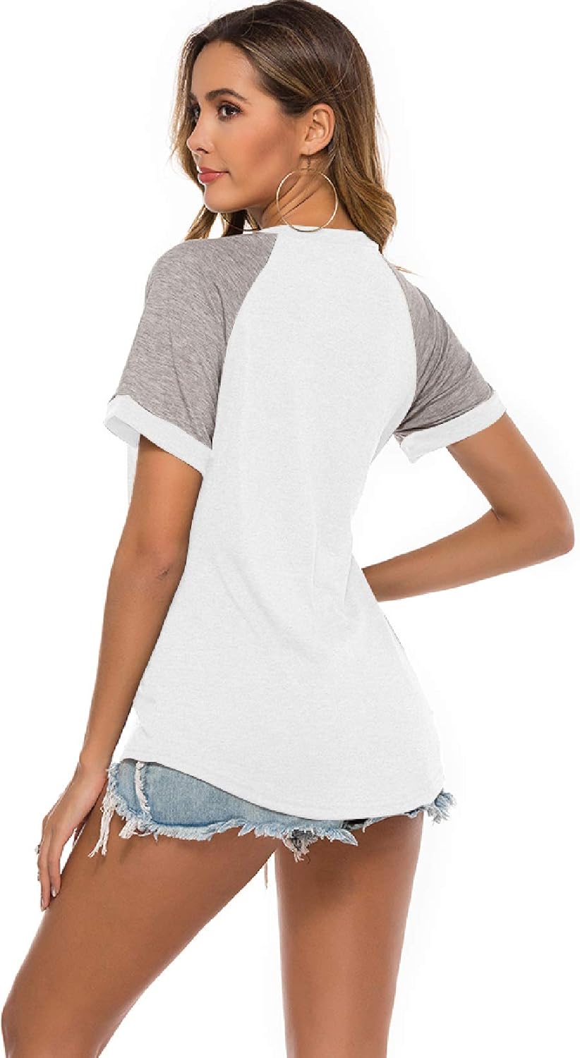 Casual t-shirt with breathable fabric which contains cotton & polyester.Breathable, lightweight, comfy, stretchy, well made, and not see-through.Design: round neck, short sleeves, color block raglan sleeves with different color trim. Simple beauty, a wardrobe must-have!Perfect for daily, office, trip, school, date, party, shopping etc.You could pair this basic tops under a jacket, with jeans, leggings or a skirt in Spring, Summer and Fall.Please refer to the size chart provided by us before purchasing.