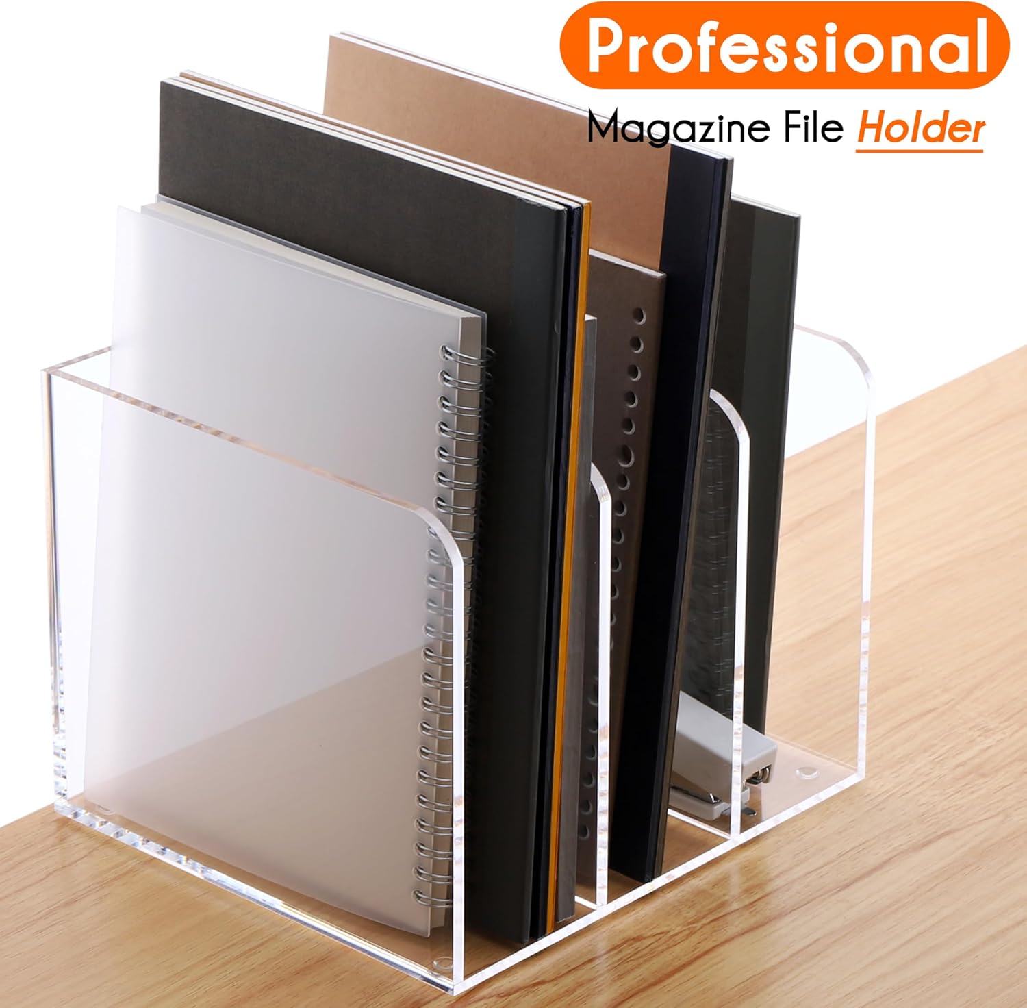 Multifunctional Desk Organizer:The magazine file holder can store magazines, files, folders, books, binders,and more items. The acrylic magazine holder is the perfect solution for office, school classroom organization, and home storage, and a very useful organizer