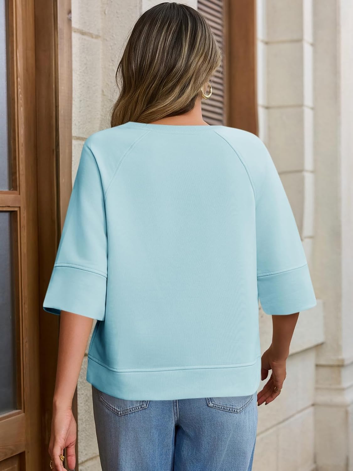 FISOEW 2025 Summer Half Sleeve Basic Comfy Sweatshirts For Women