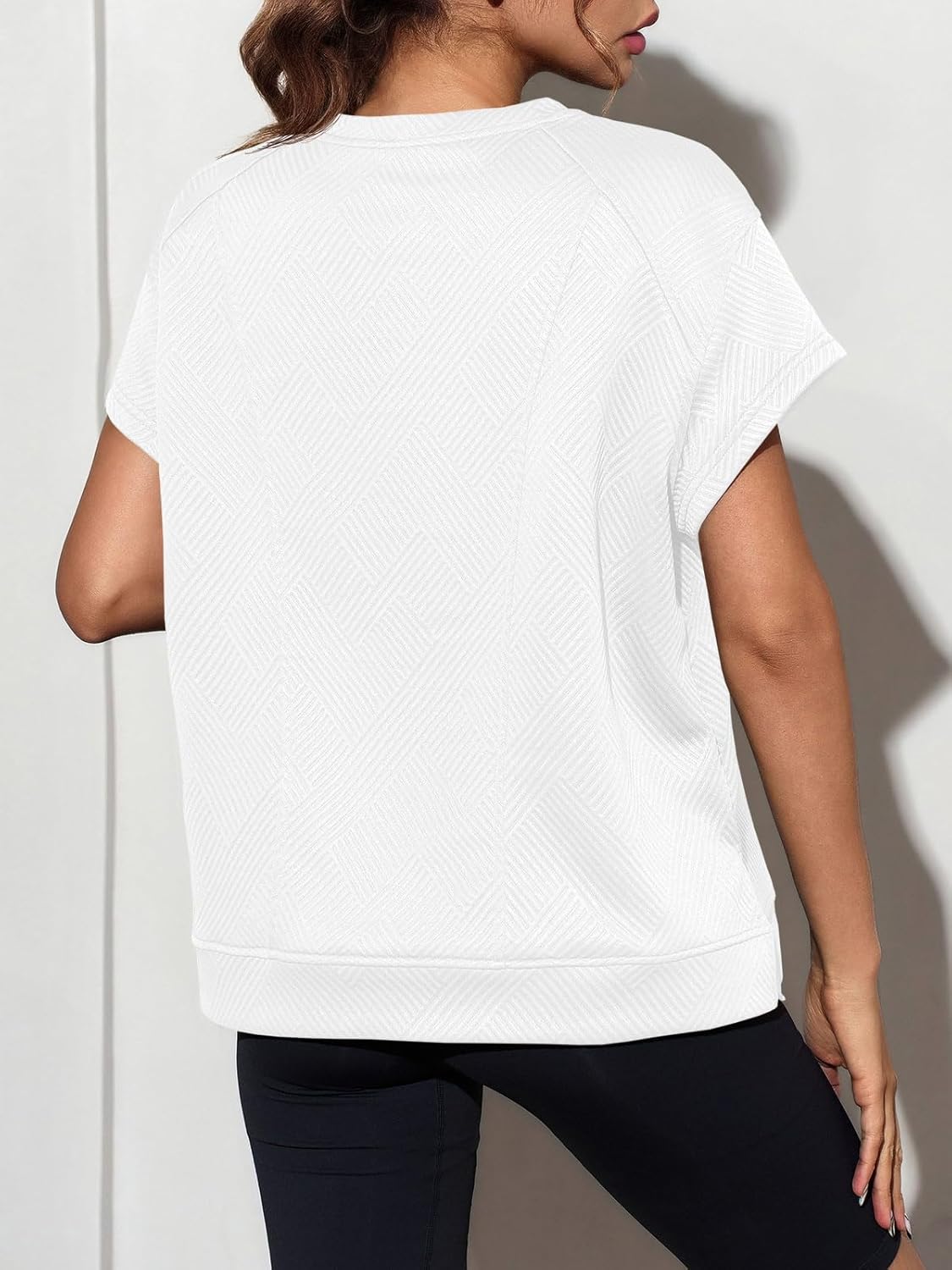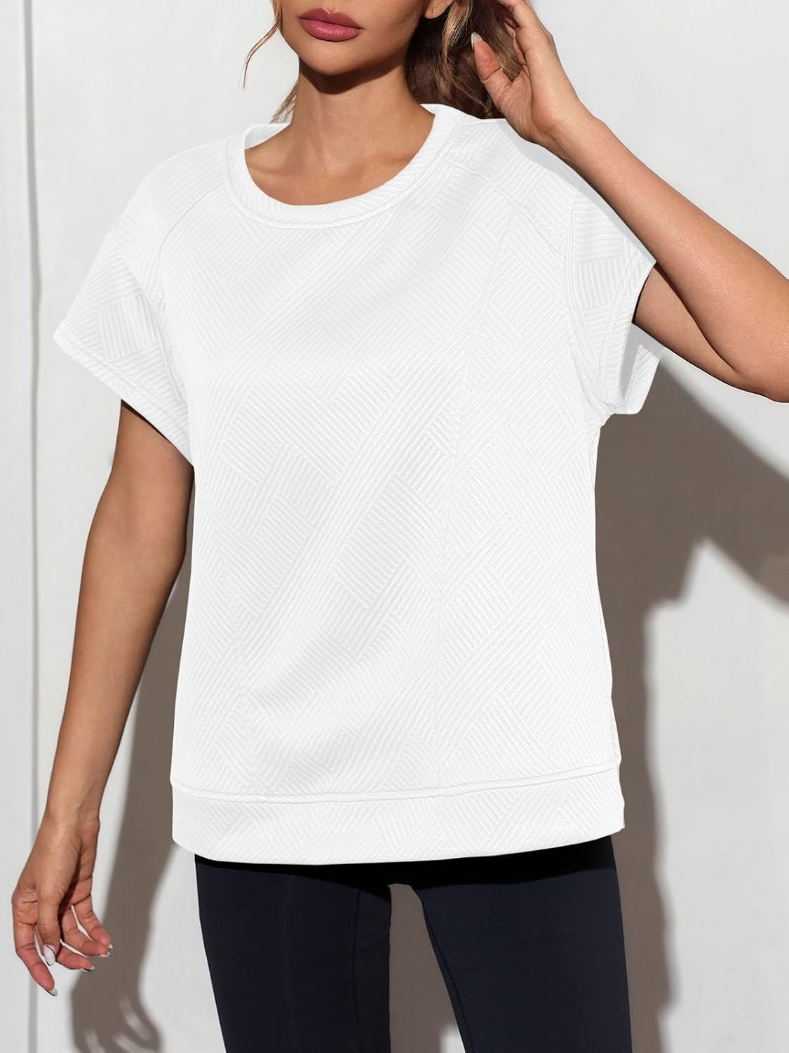 Women’s Summer Casual Texture Short Sleeve Crewneck Loose Fit Sweatshirt