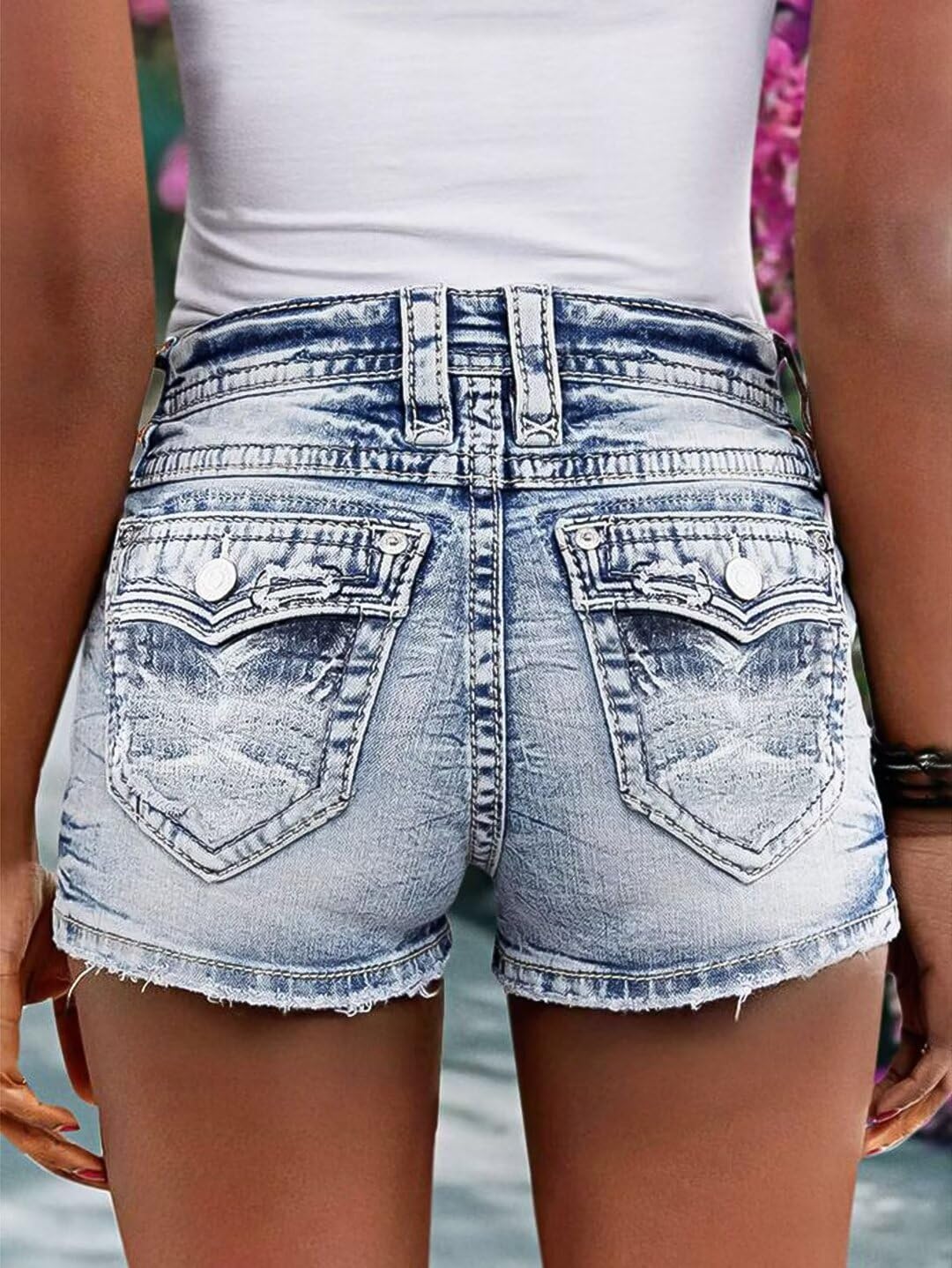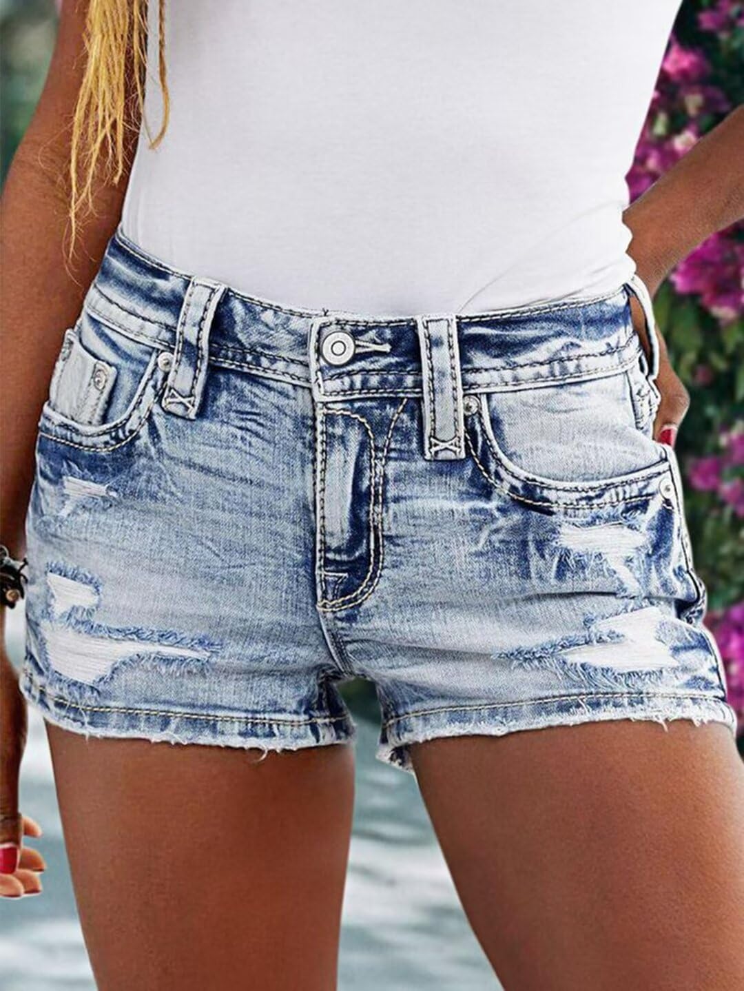 Customers find these shorts have a perfect true-to-size fit and are very cute. They are comfortable, with one customer noting they gently hug the hips. The fabric quality receives positive feedback, with one mentioning the nicely done fraying.